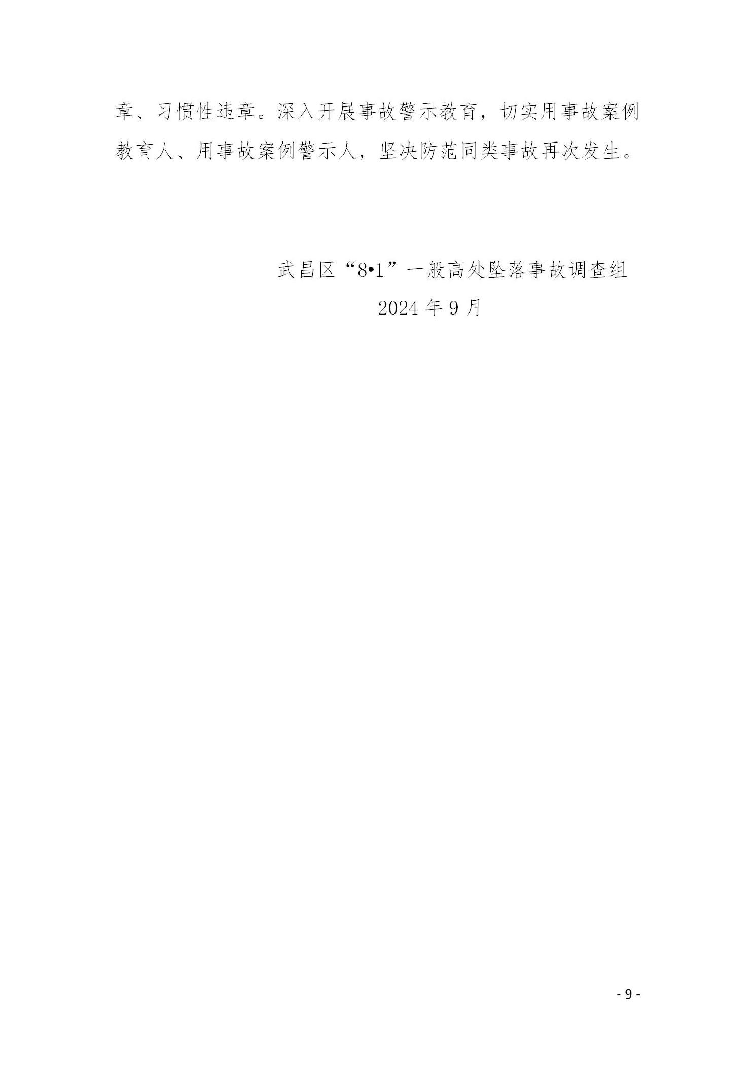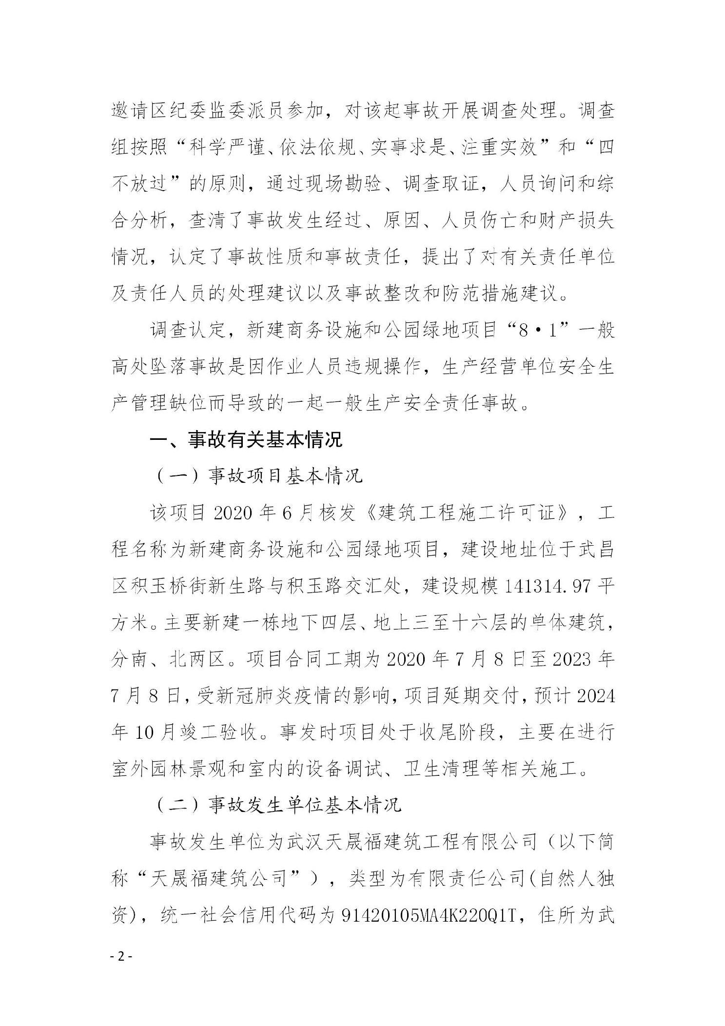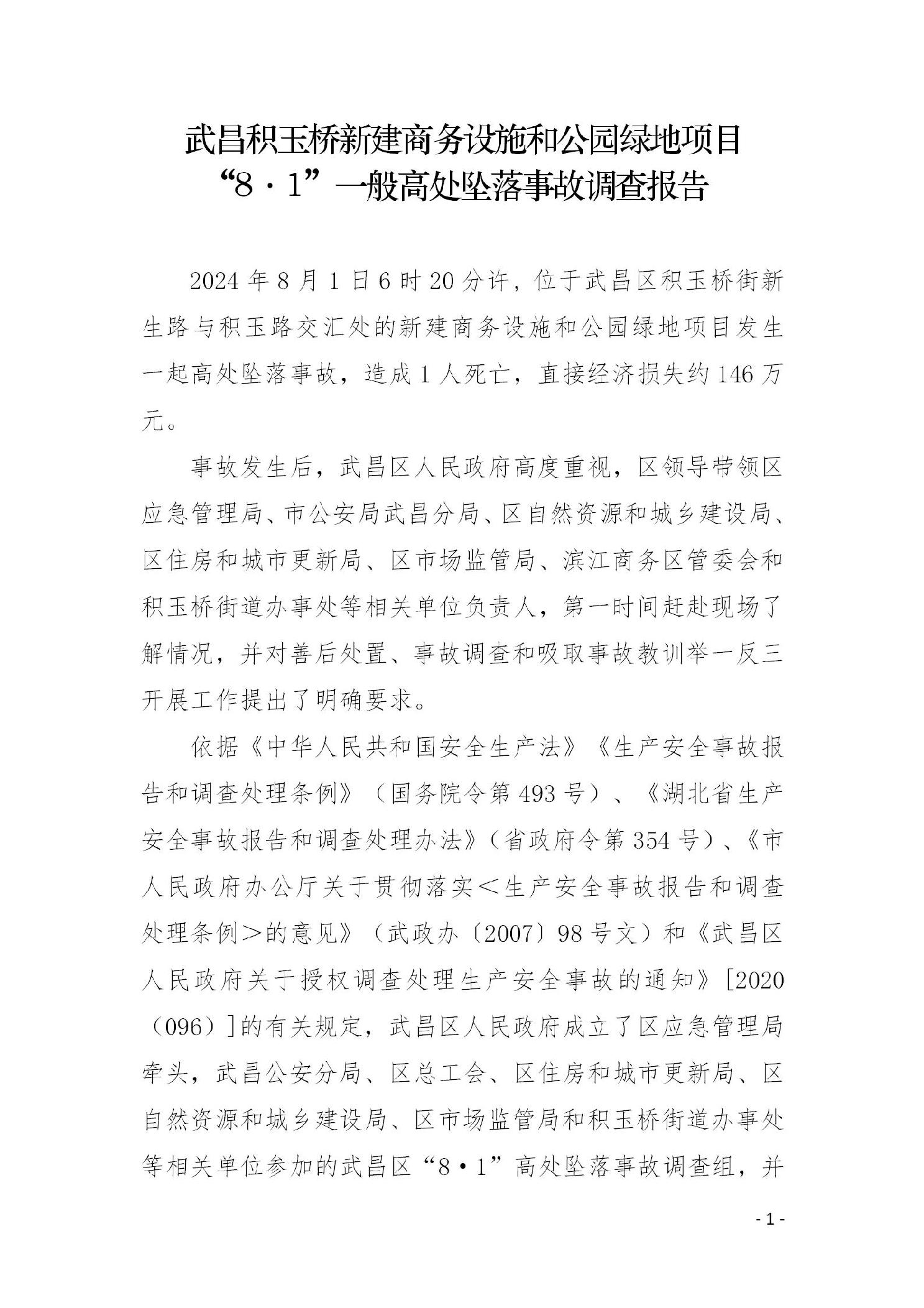 武昌积玉桥新建商务设施和公园绿地项目“8·1”一般高处坠落事故调查报告