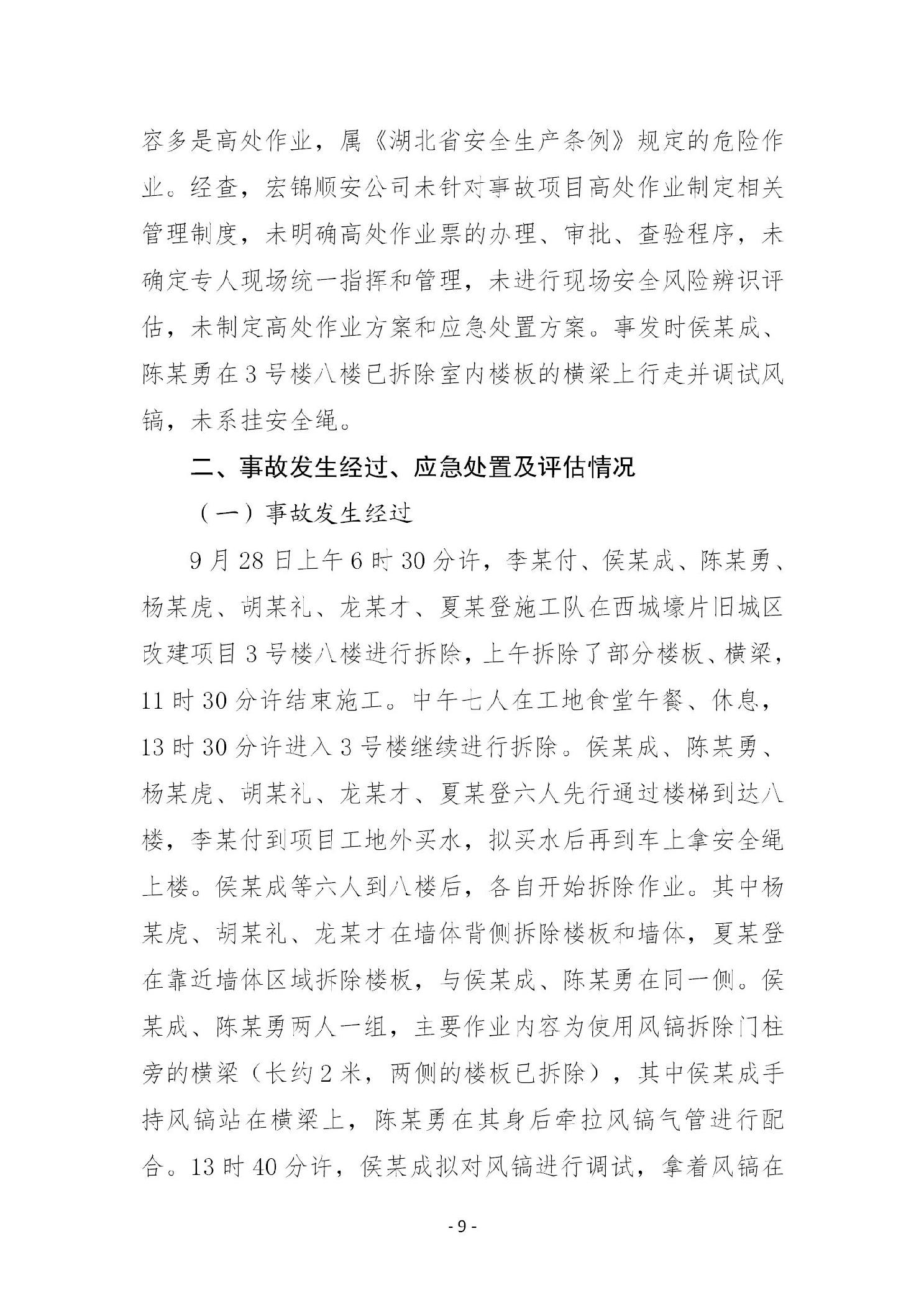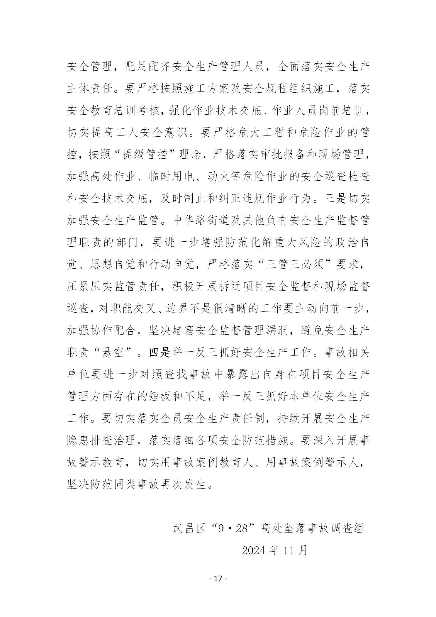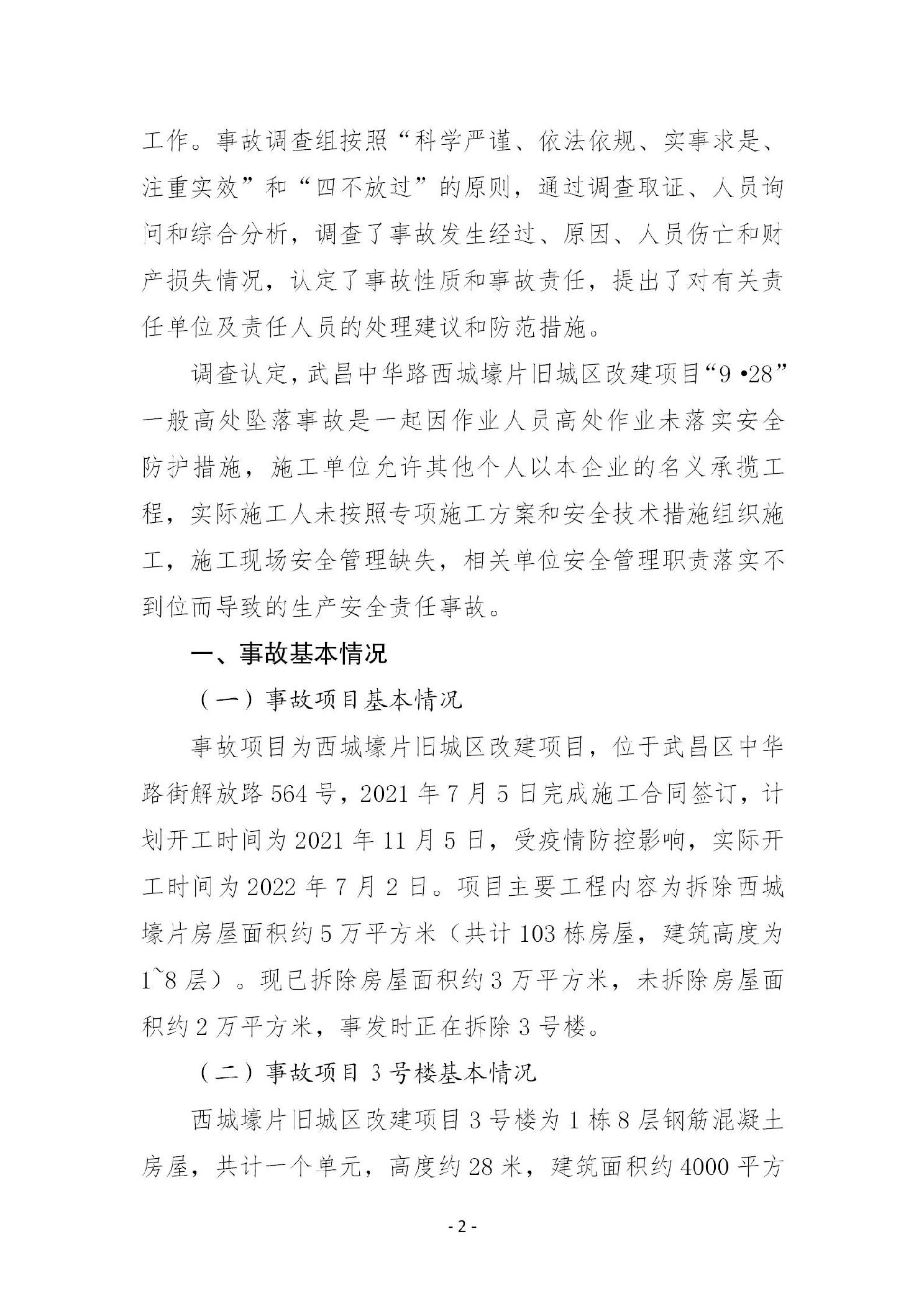 武昌中华路西城壕片旧城区改建项目“9·28”一般高处坠落事故调查报告