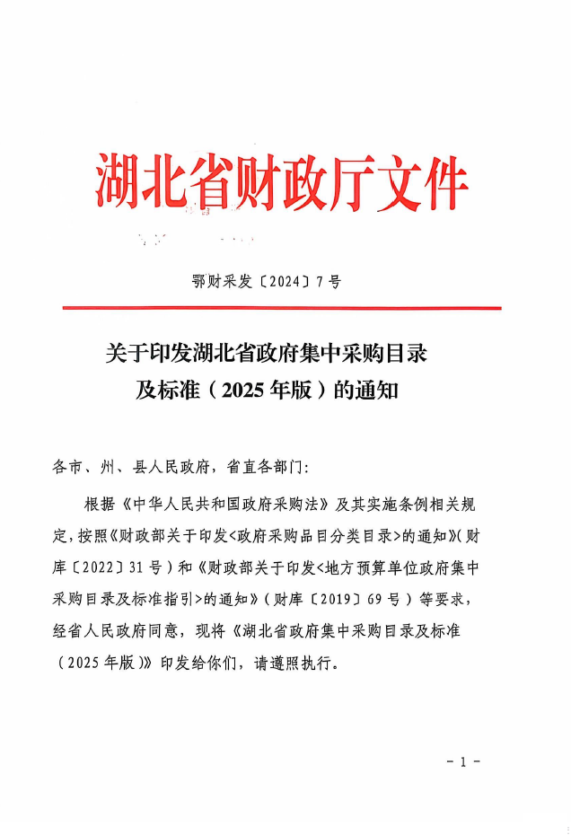 关于印发湖北省政府集中采购目录及标准(2025年版)的通知.pdf