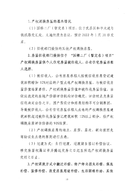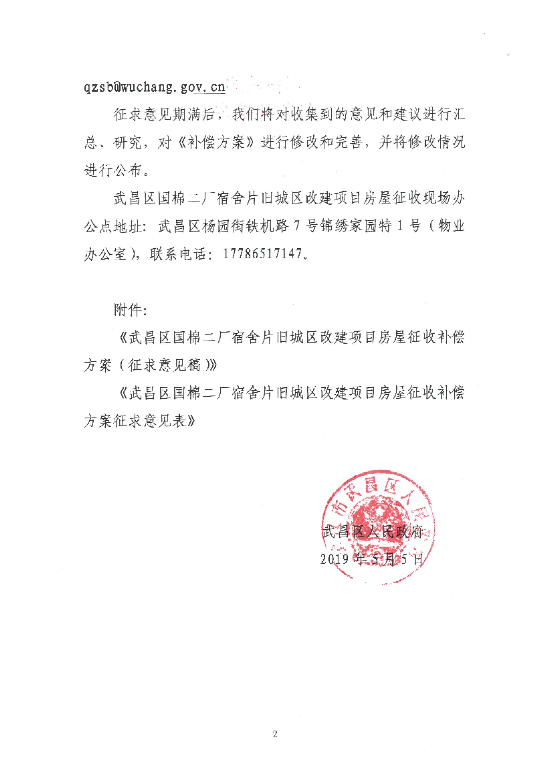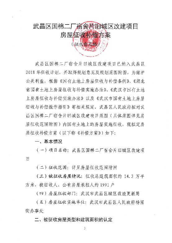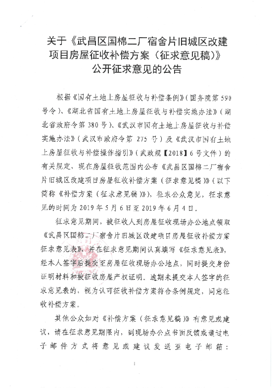 关于《武昌区国棉二厂宿舍片旧城区改建项目房屋征收补偿方案(征求意见稿)》公开征求意见的公告