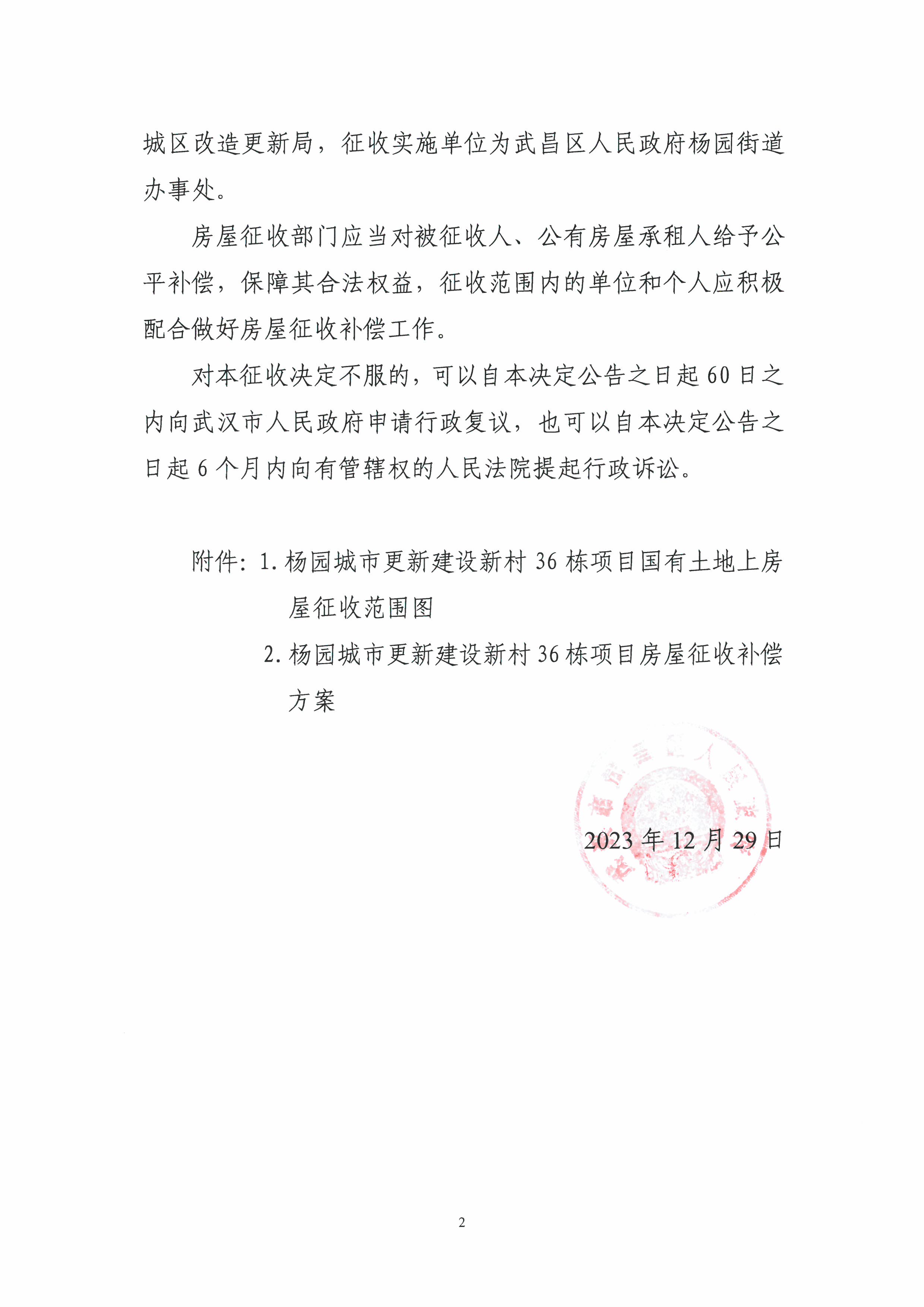 房屋征收决定(杨园城市更新建设新村36栋项目)