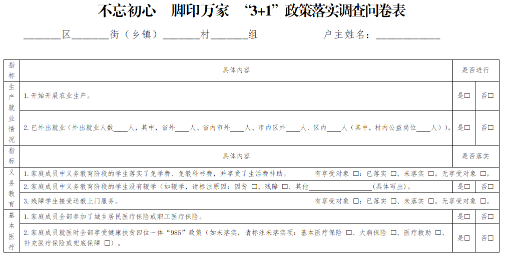 附件: 1. “3+1”政策落实调查问卷表