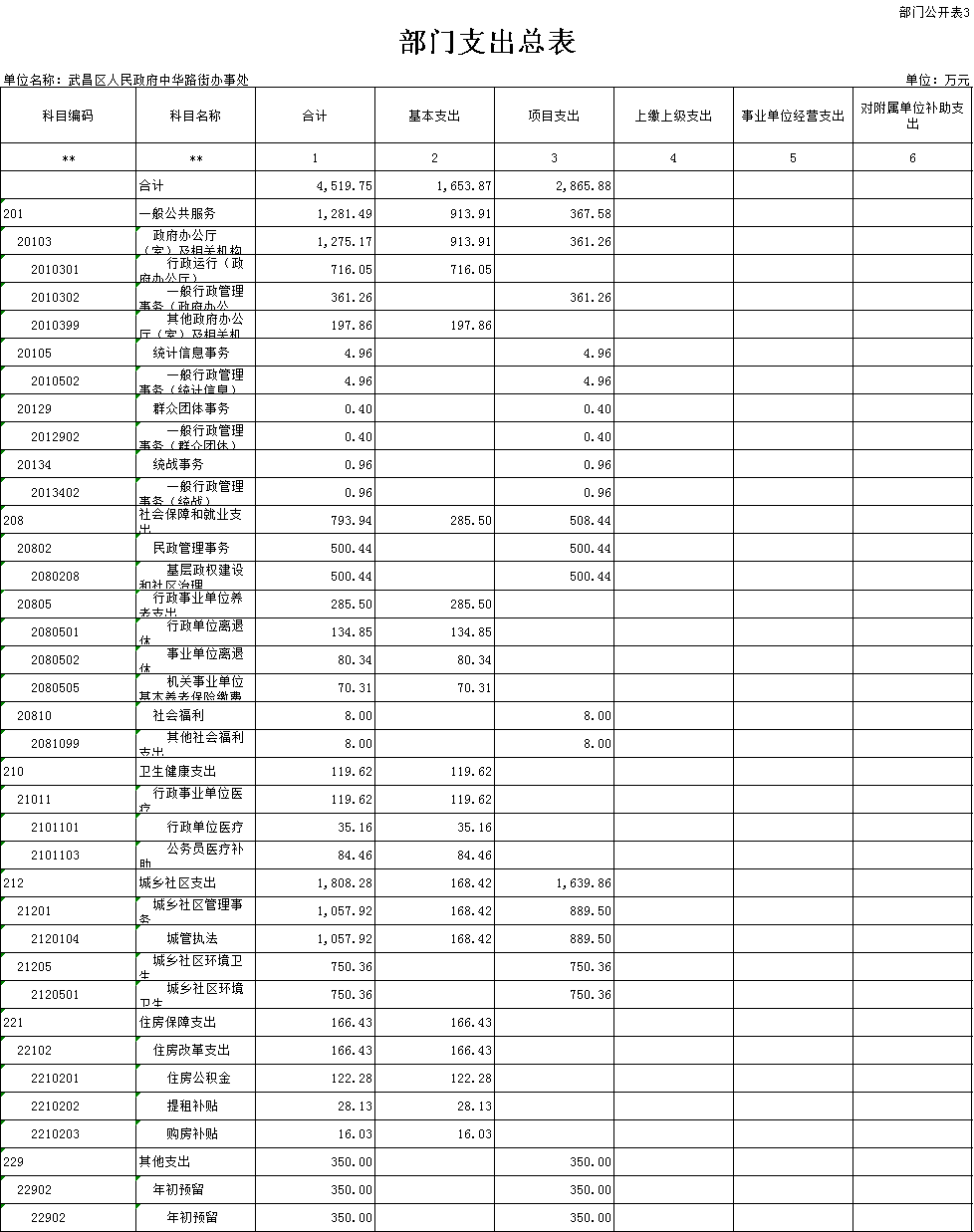 中华路街2020年部门支出总表