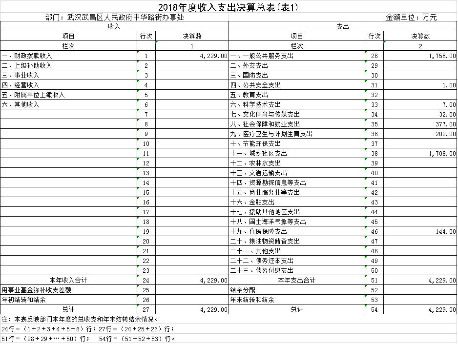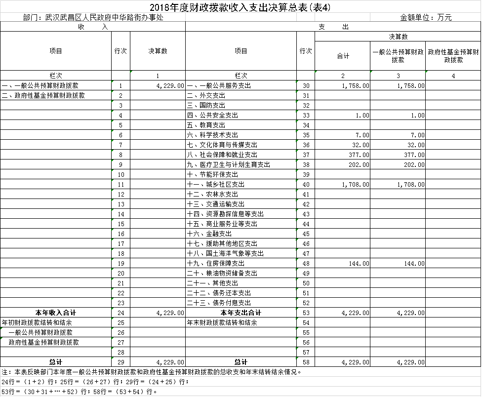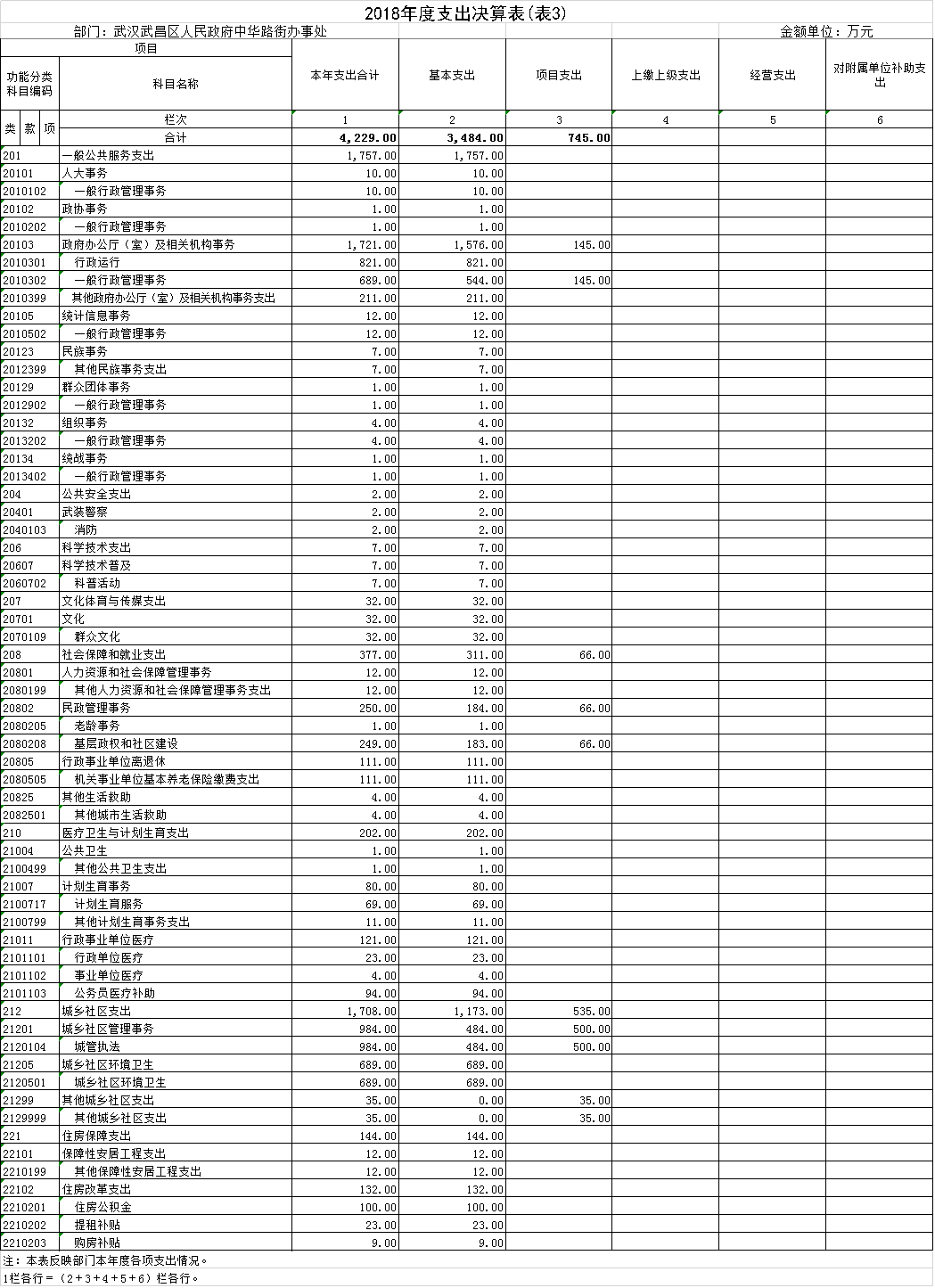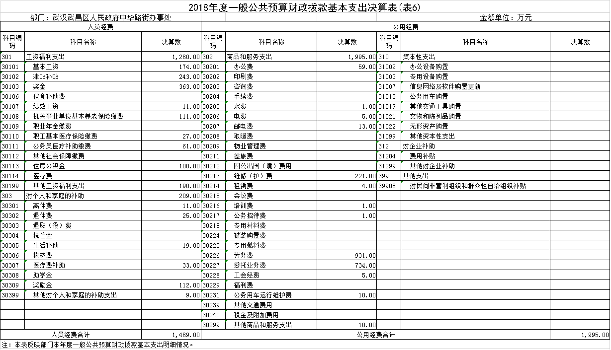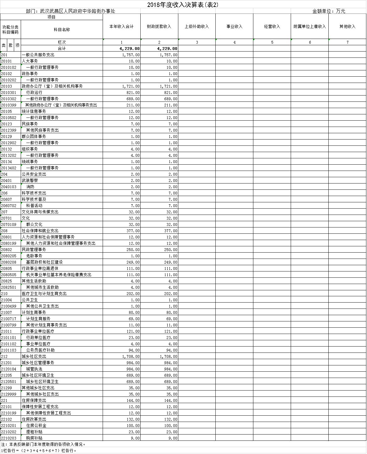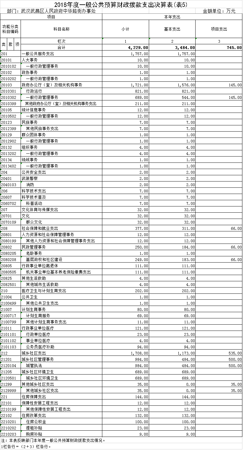 2018年度武汉武昌区人民政府中华路街办事处部门决算