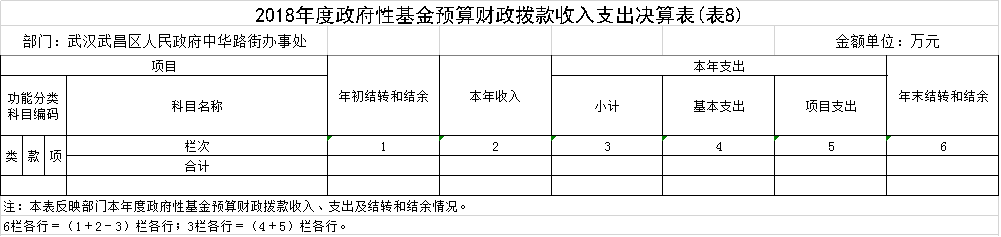 (如果本部门没有政府性基金预算财政拨款收入,也没有使用政府性基金预算财政拨款安排的支出,则需要在公开空白的“2018年度政府性基金预算财政拨款收入支出决算表(表8)”下作说明)