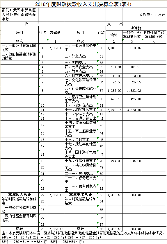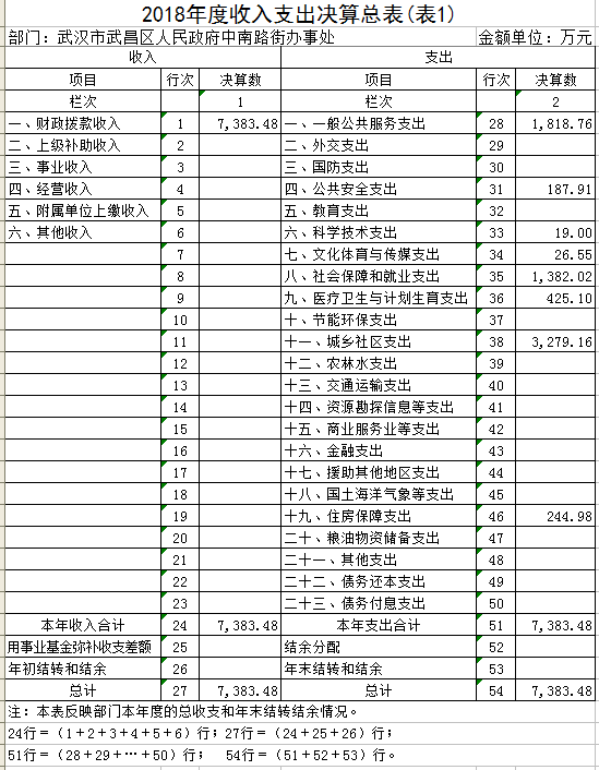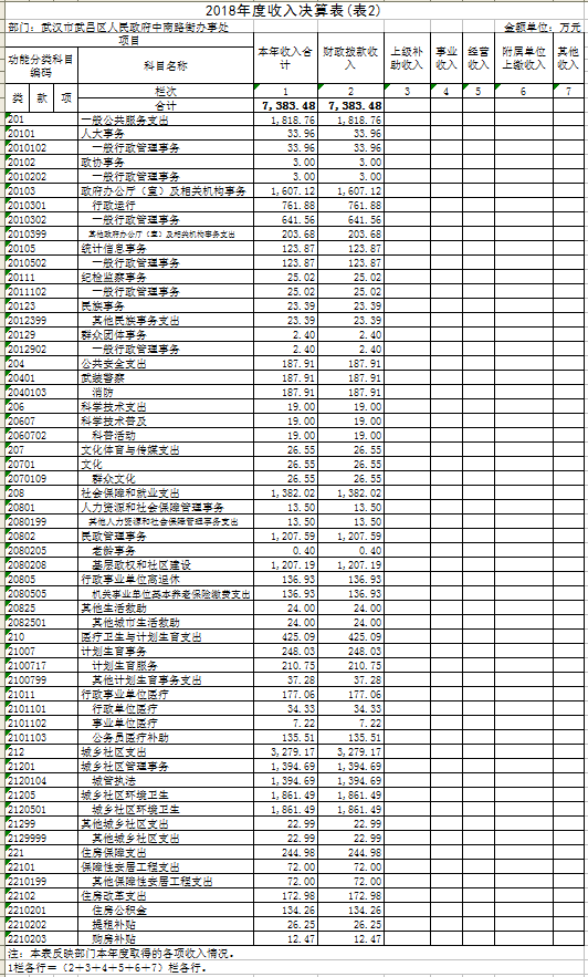 第二部分 武汉市武昌区人民政府中南路街办事处2018年度部门决算表