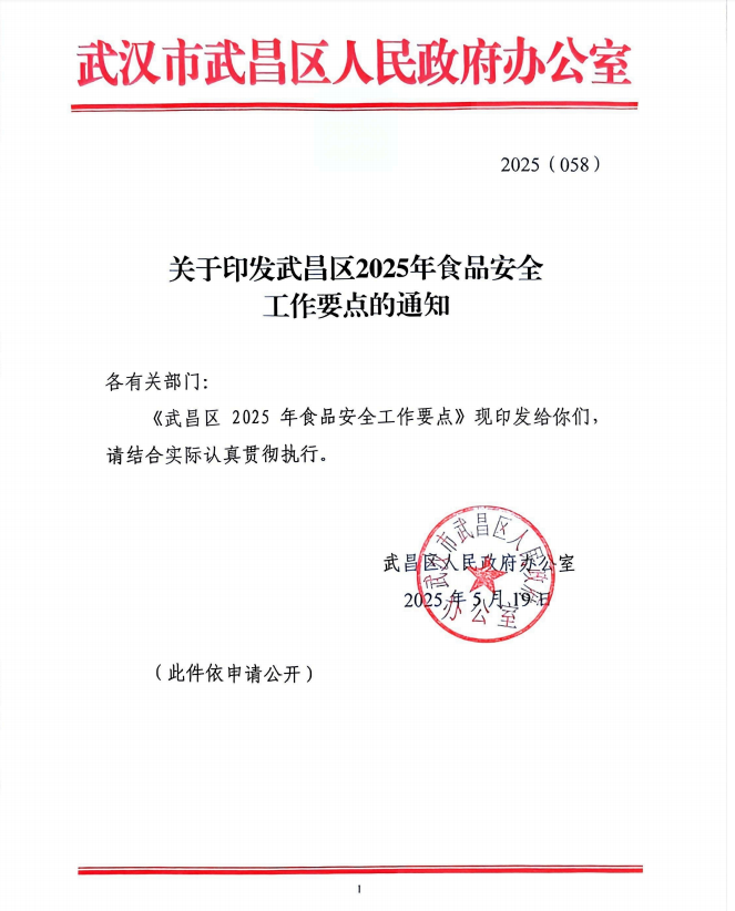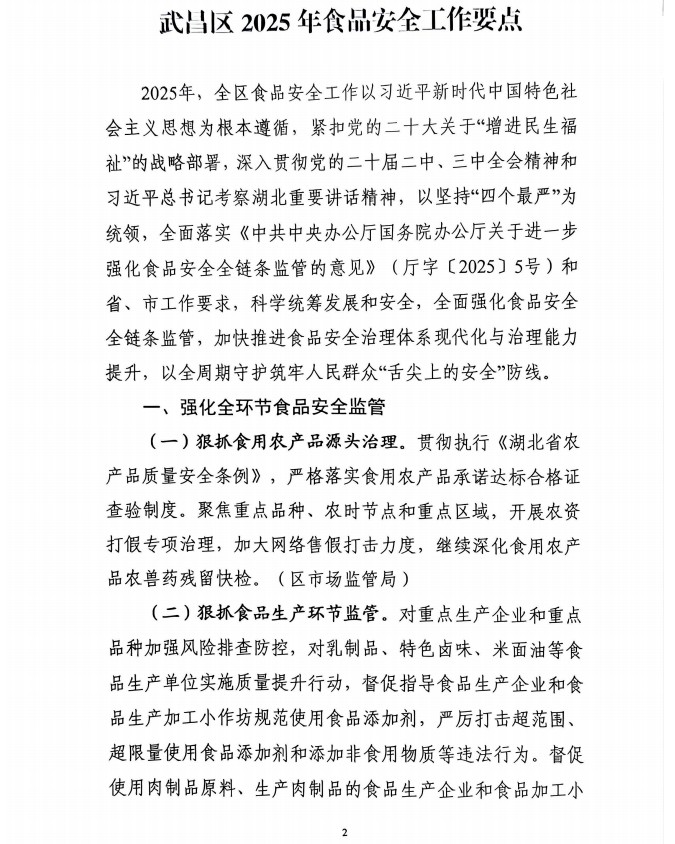武昌区2025年食品安全工作要点