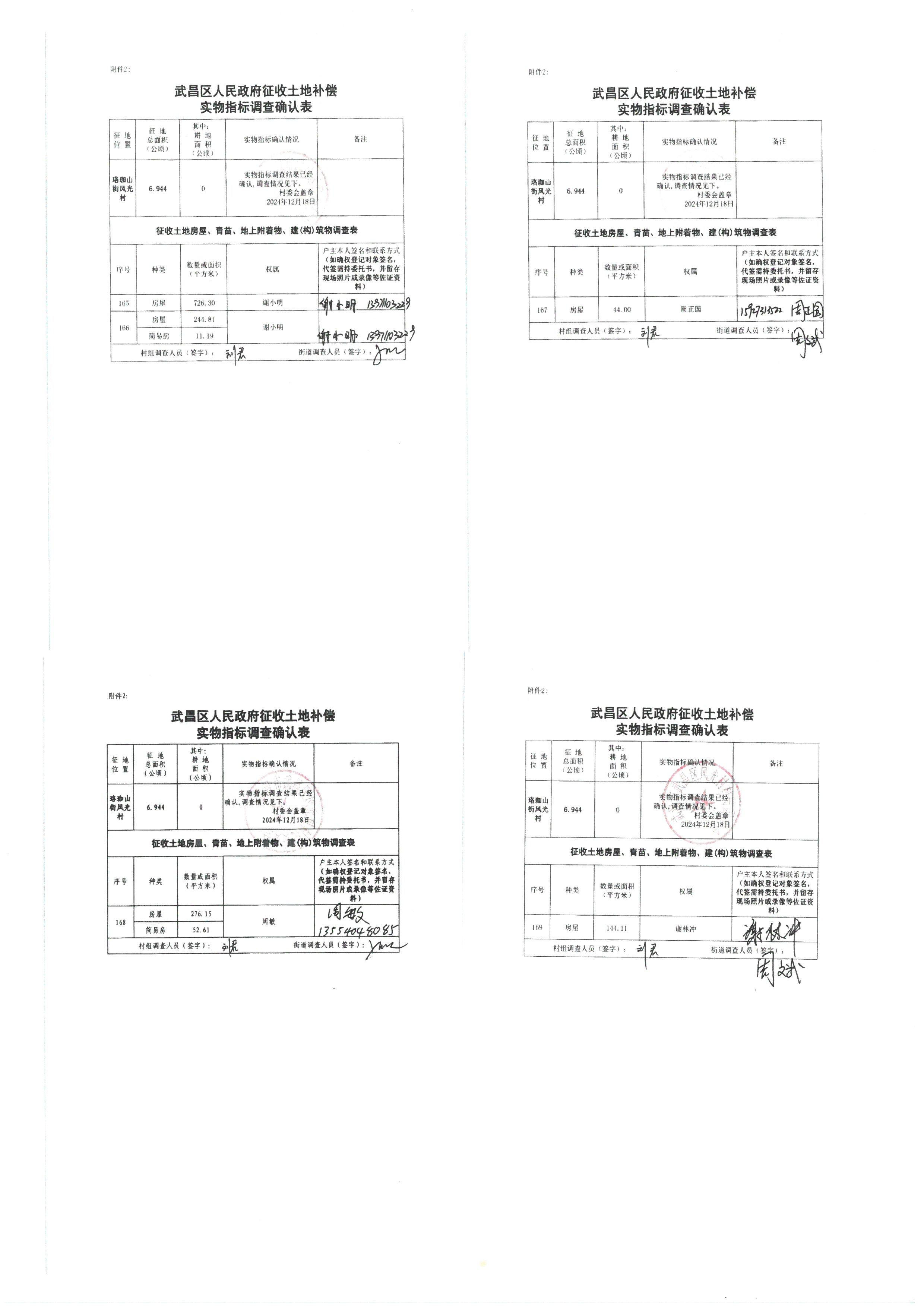 2.青苗和地上附着物补偿。按照《市人民政府关于继续实施武汉市被征收土地上的附着物和青苗补偿标准的通知》(武政规〔2025〕8号)规定标准补偿。涉及村民住宅的,按照《武汉市集体土地征收补偿安置办法》(市人民政府令第317号令)规定执行。