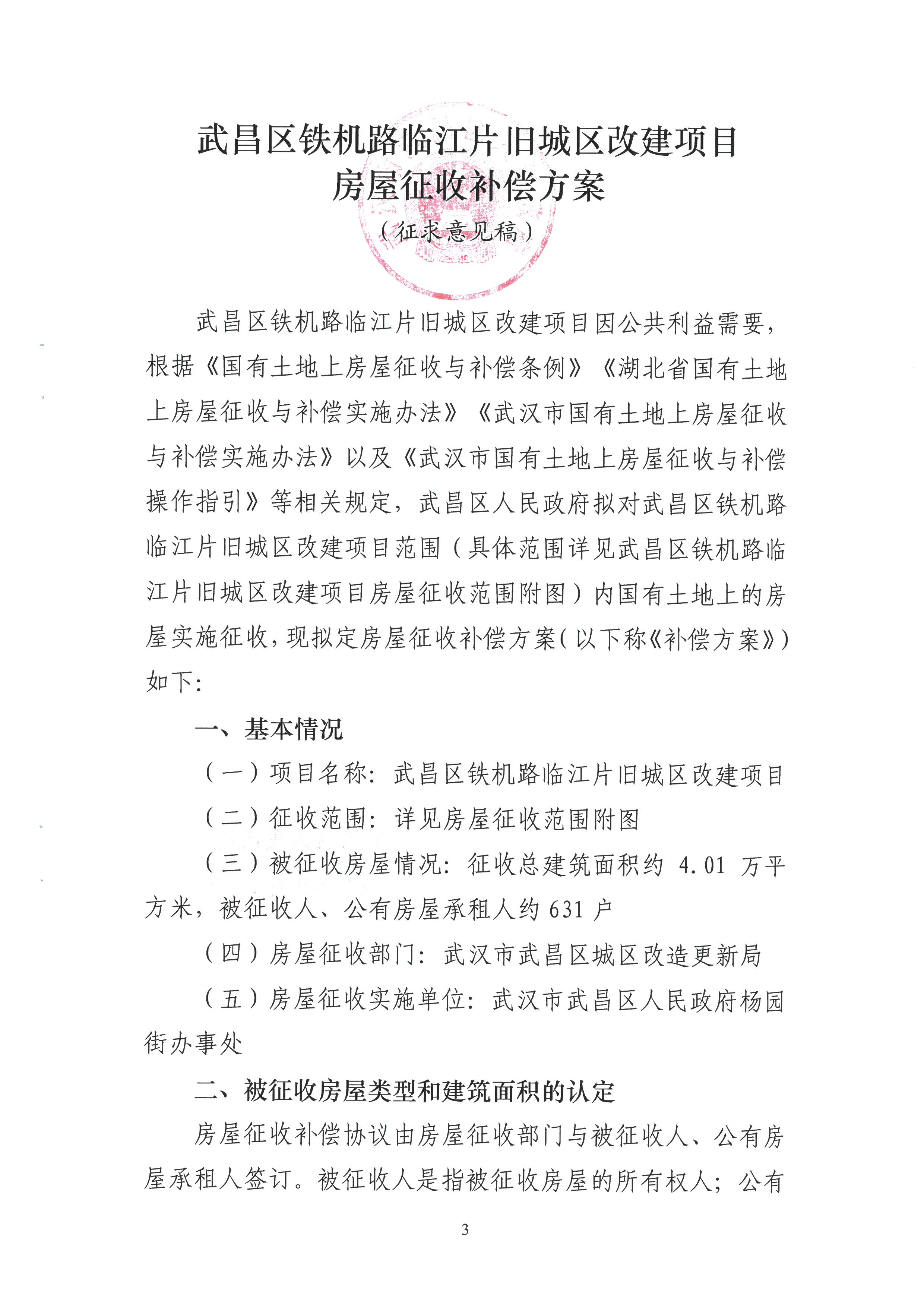 关于《武昌区铁机路临江片旧城区改建项目房屋征收补偿方案(征求意见稿)》公开征求意见的公告
