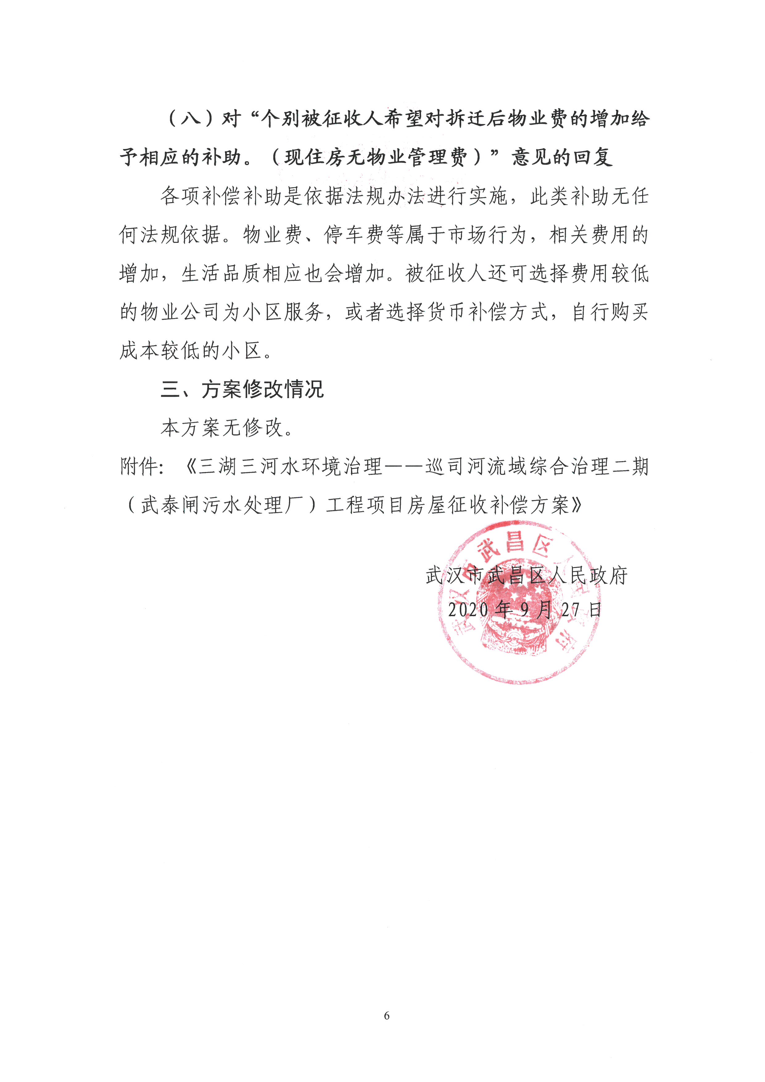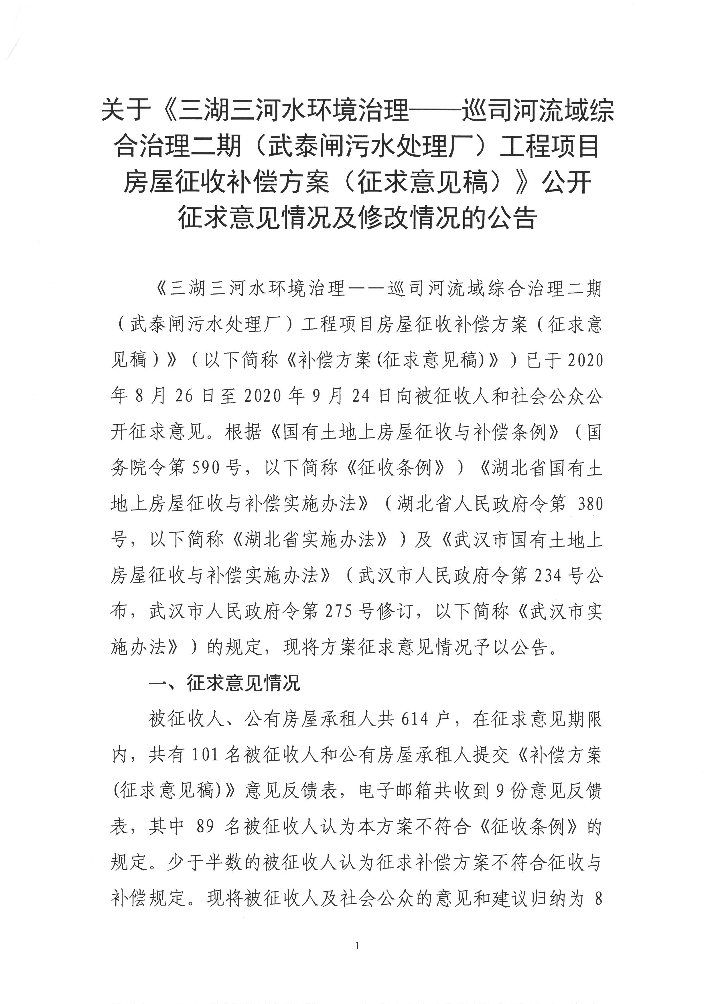 关于《三湖三河水环境治理——巡司河流域综合治理二期(武泰闸污水处理厂)工程项目房屋征收补偿方案(征求意见稿)》公开征求意见情况及修改情况的公告