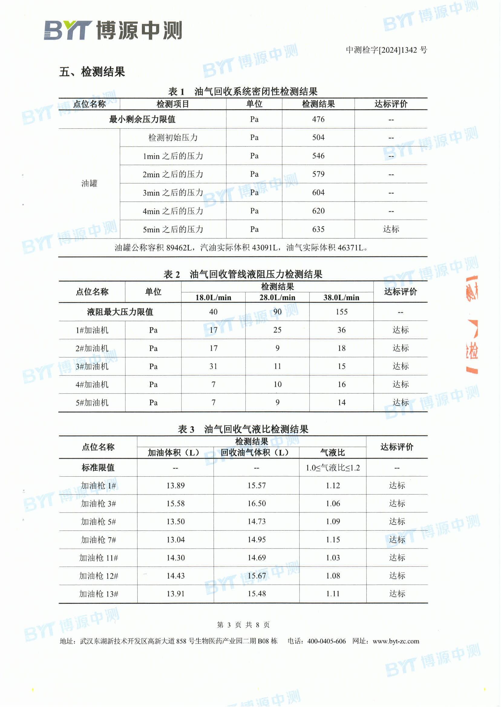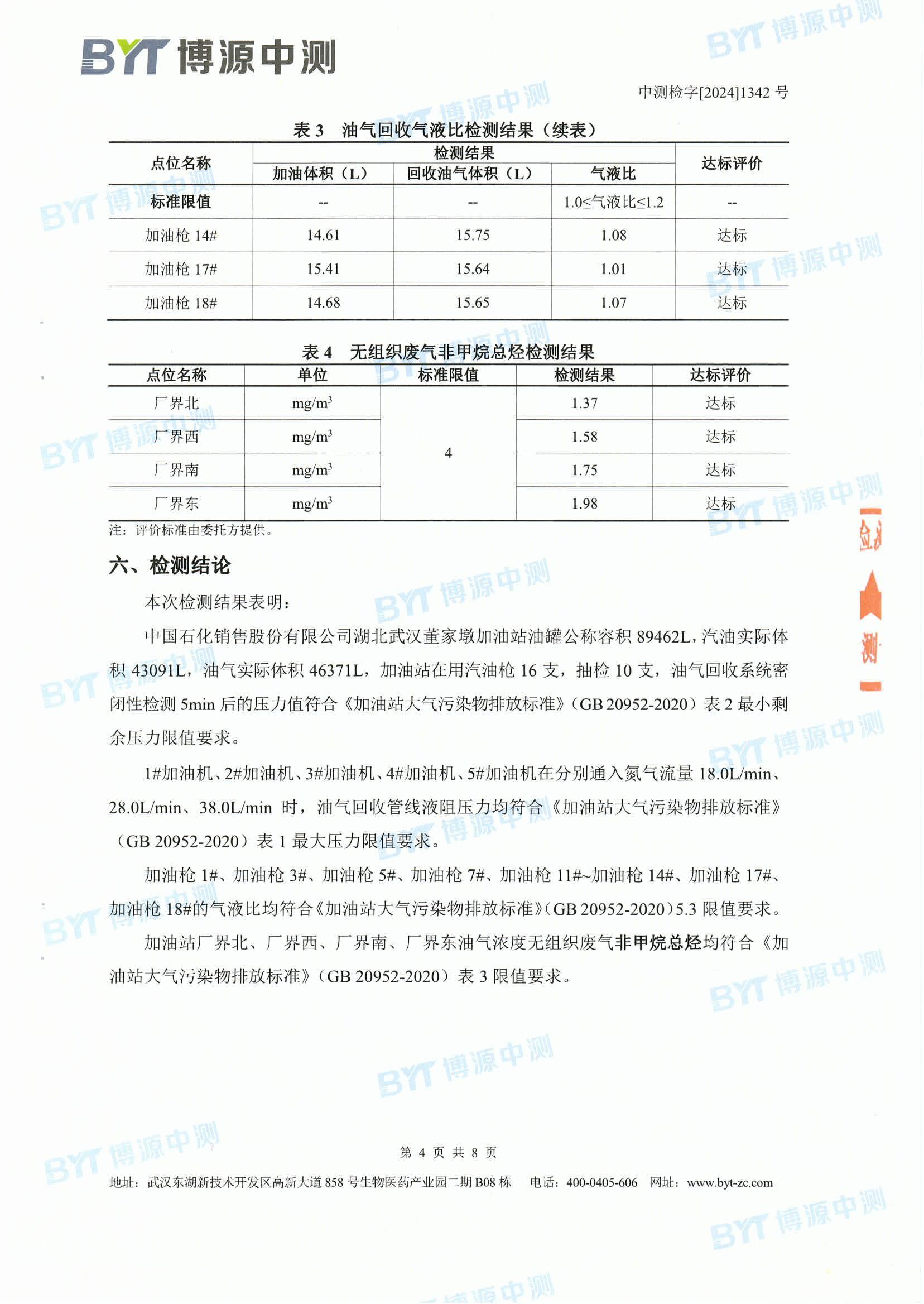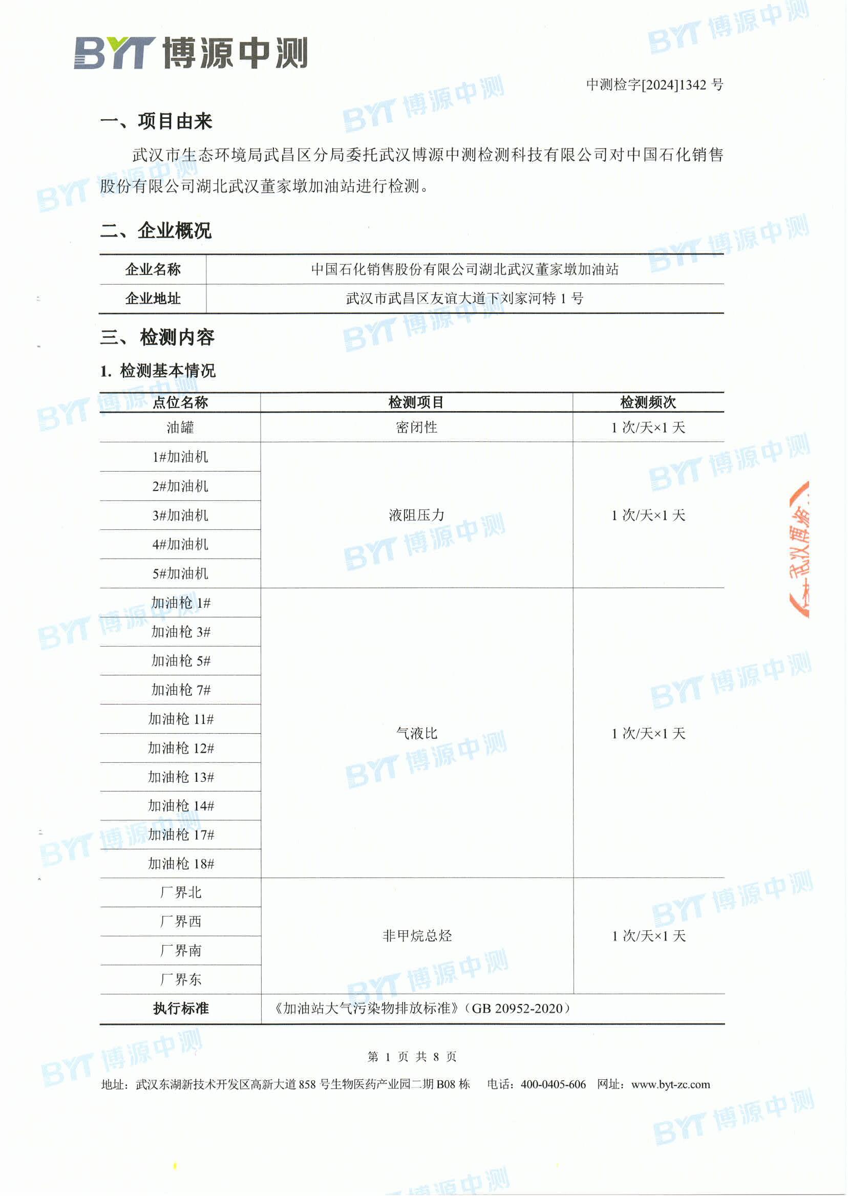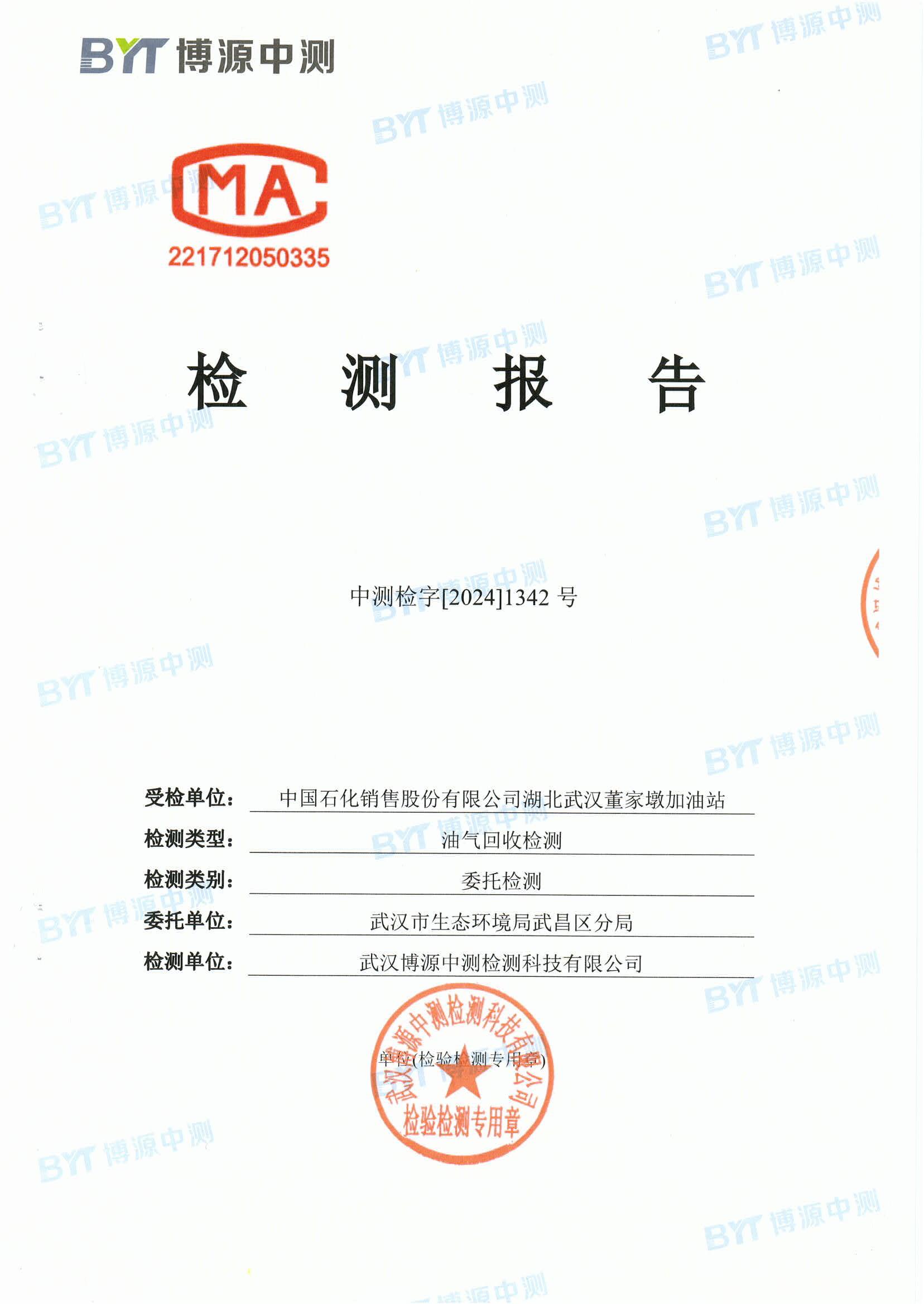 中国石化销售股份有限公司湖北武汉董家墩加油站油气回收检测