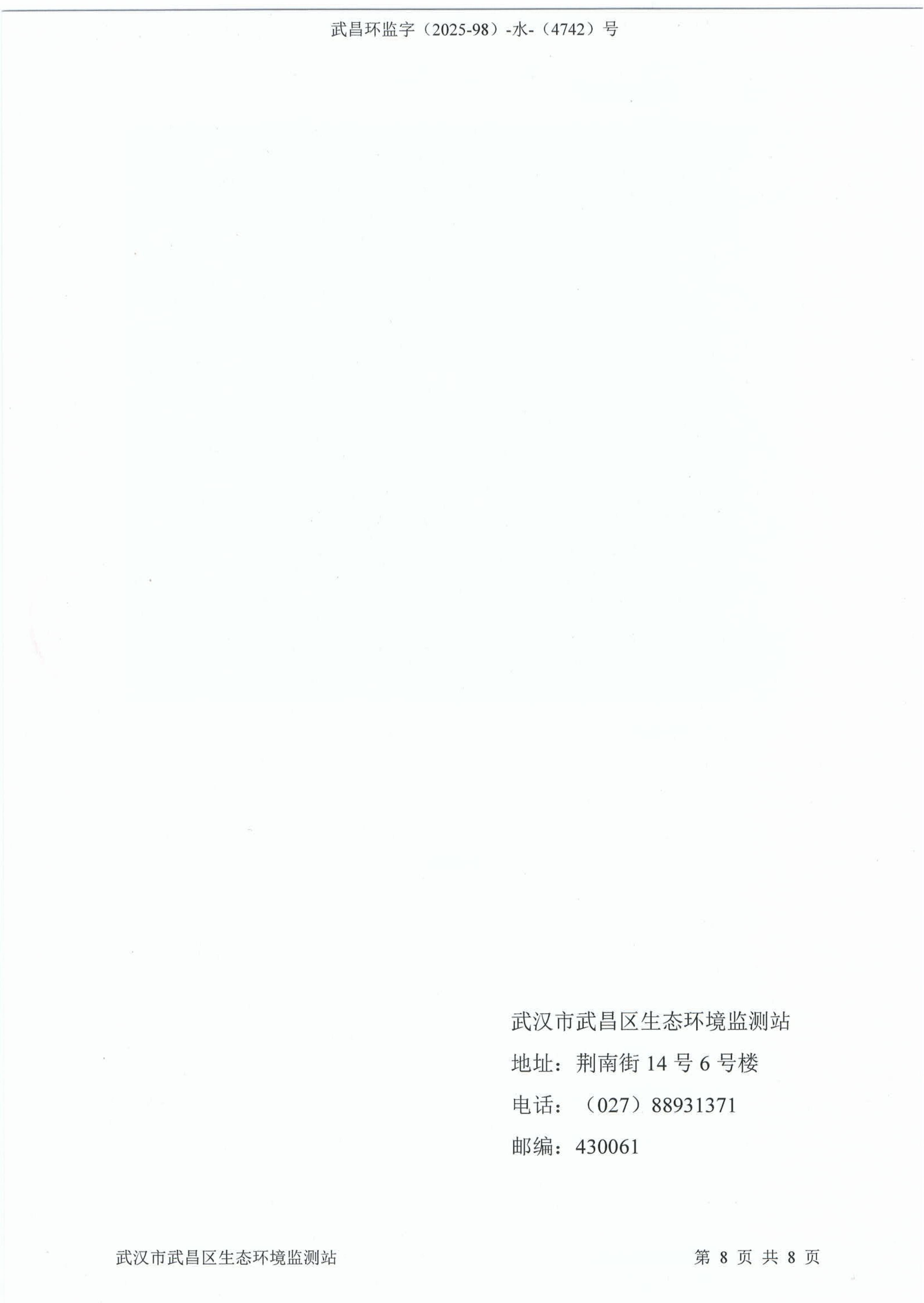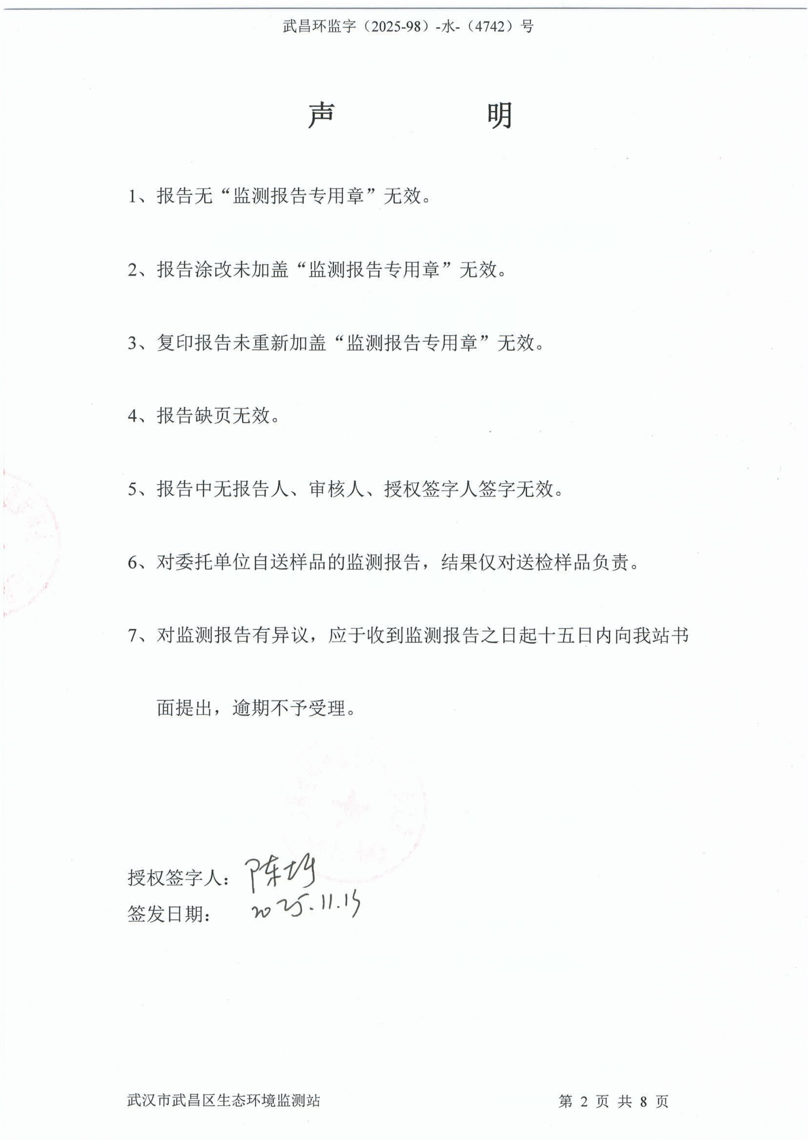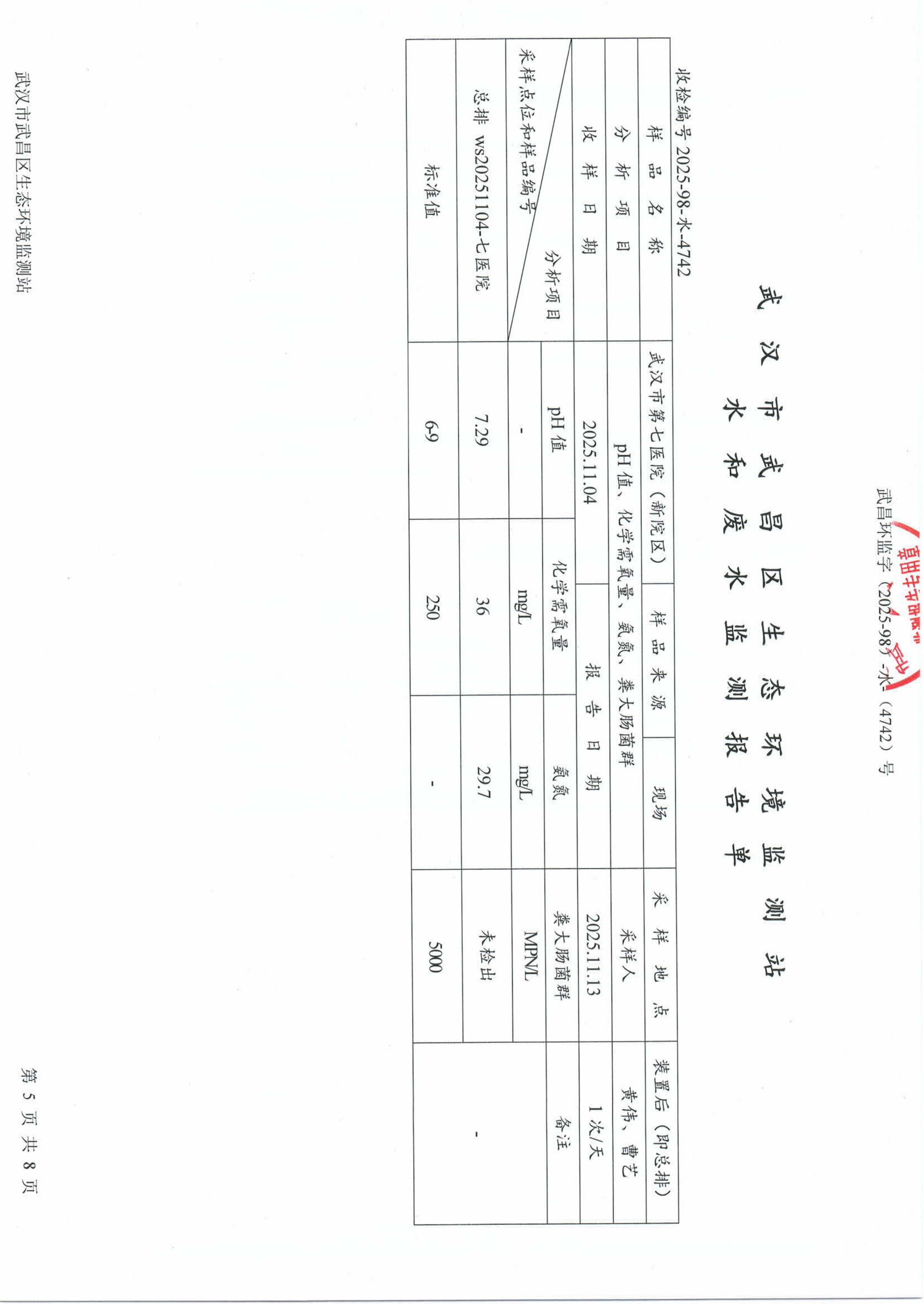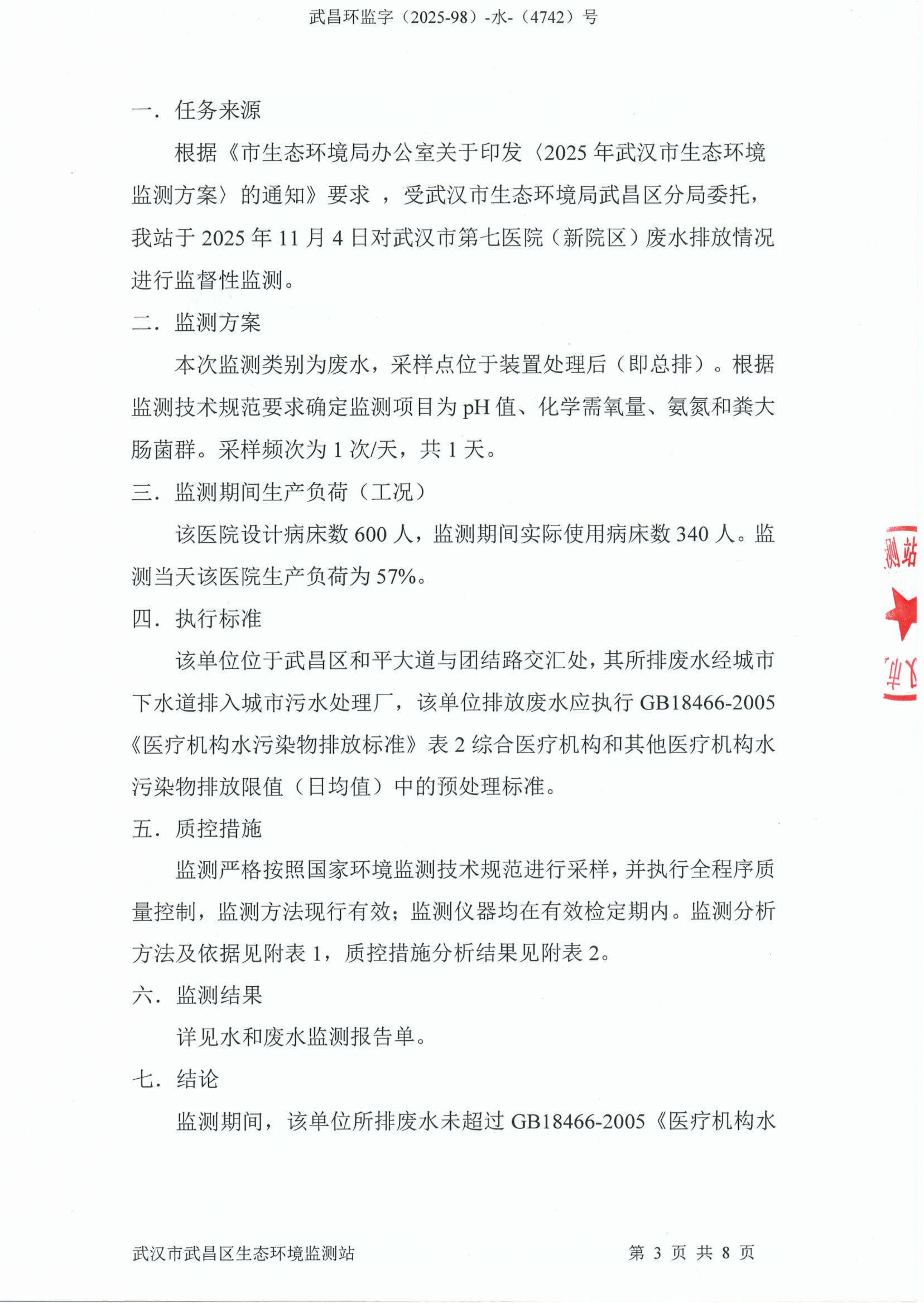 武汉市第七医院(新院区)废水监测报告