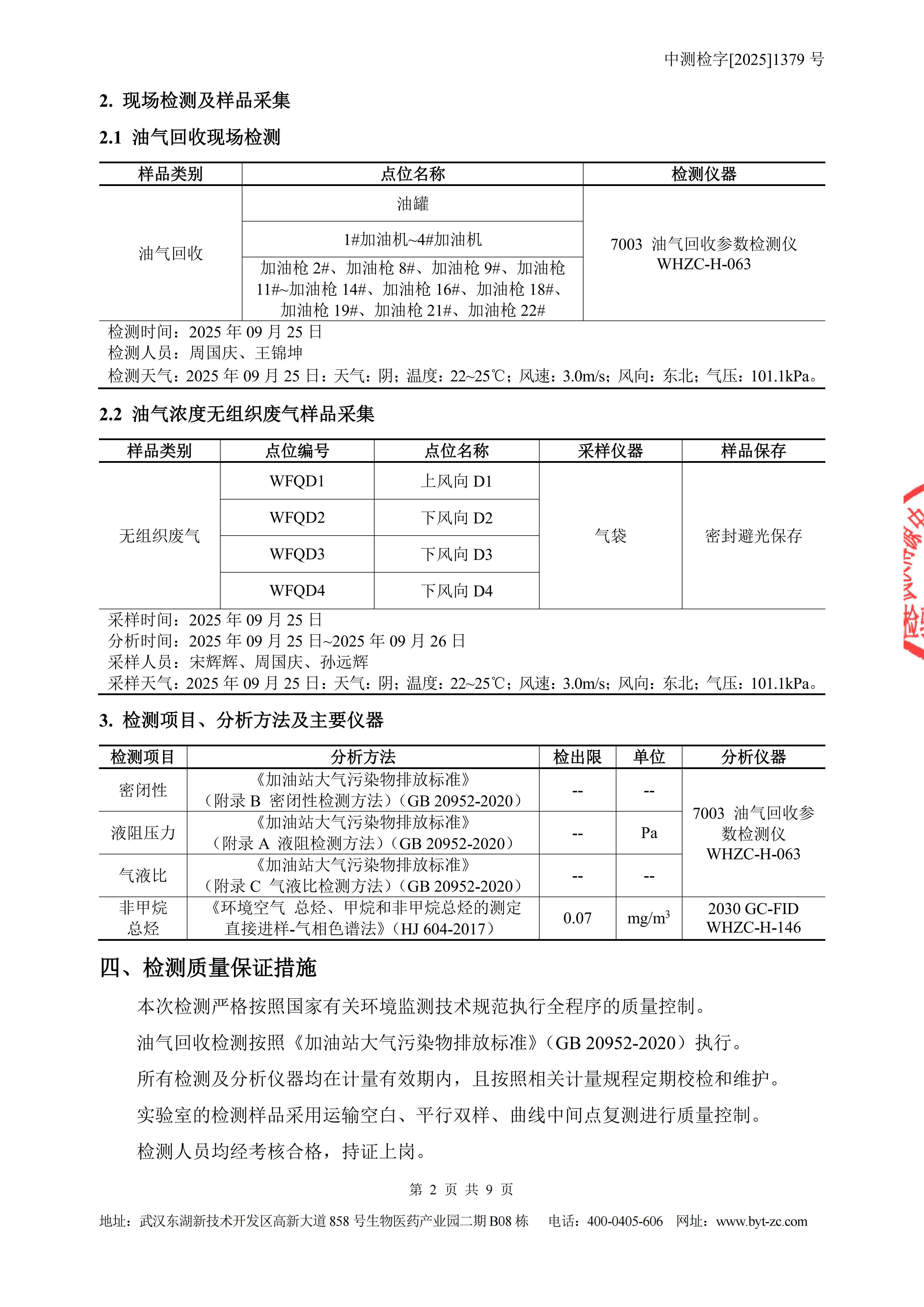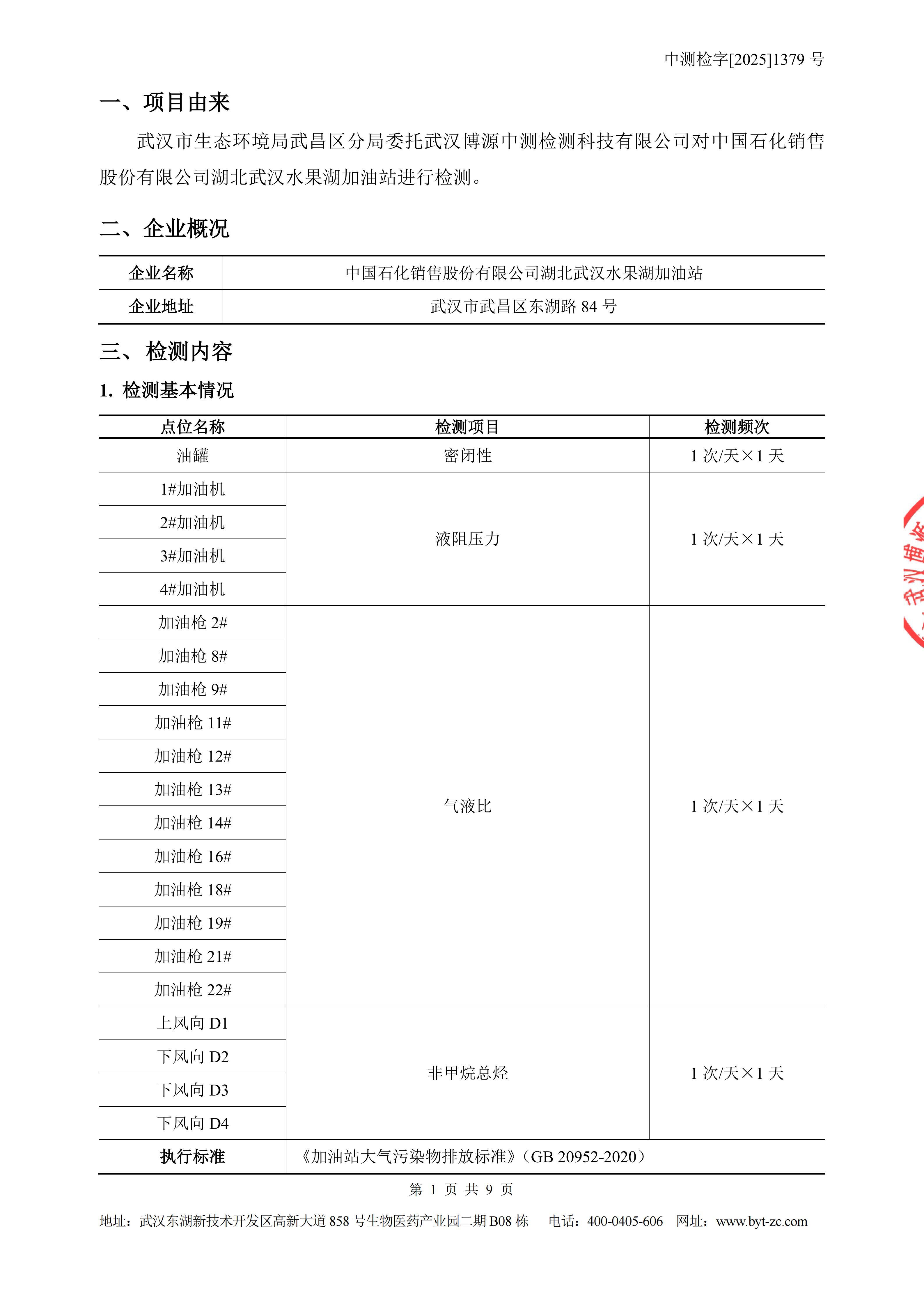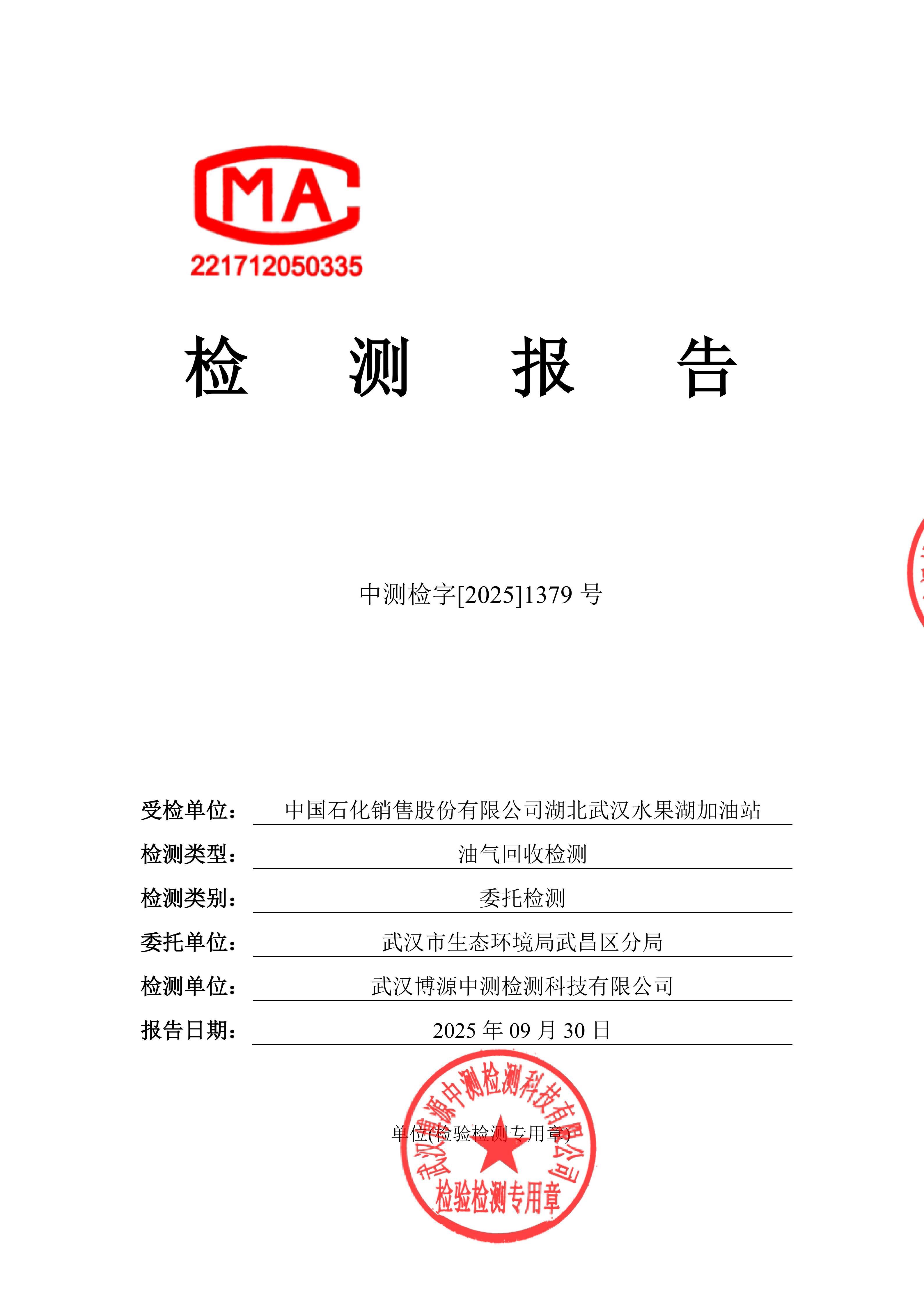 中国石化销售股份有限公司湖北武汉水果湖加油站油气回收检测