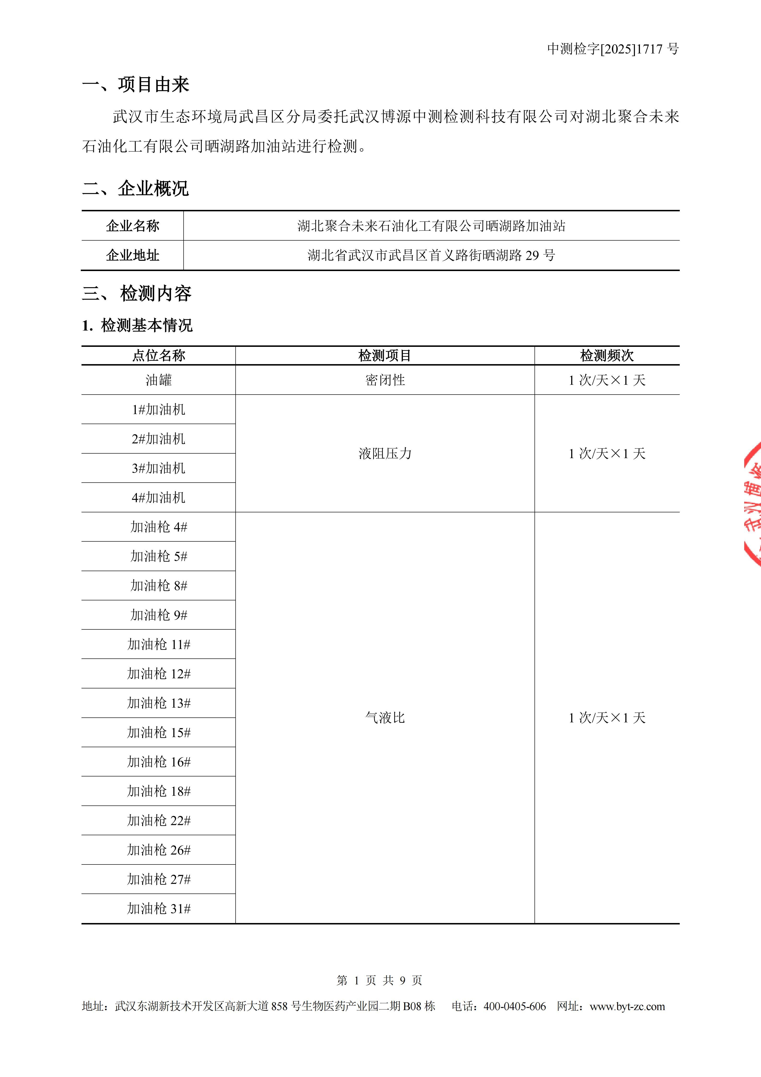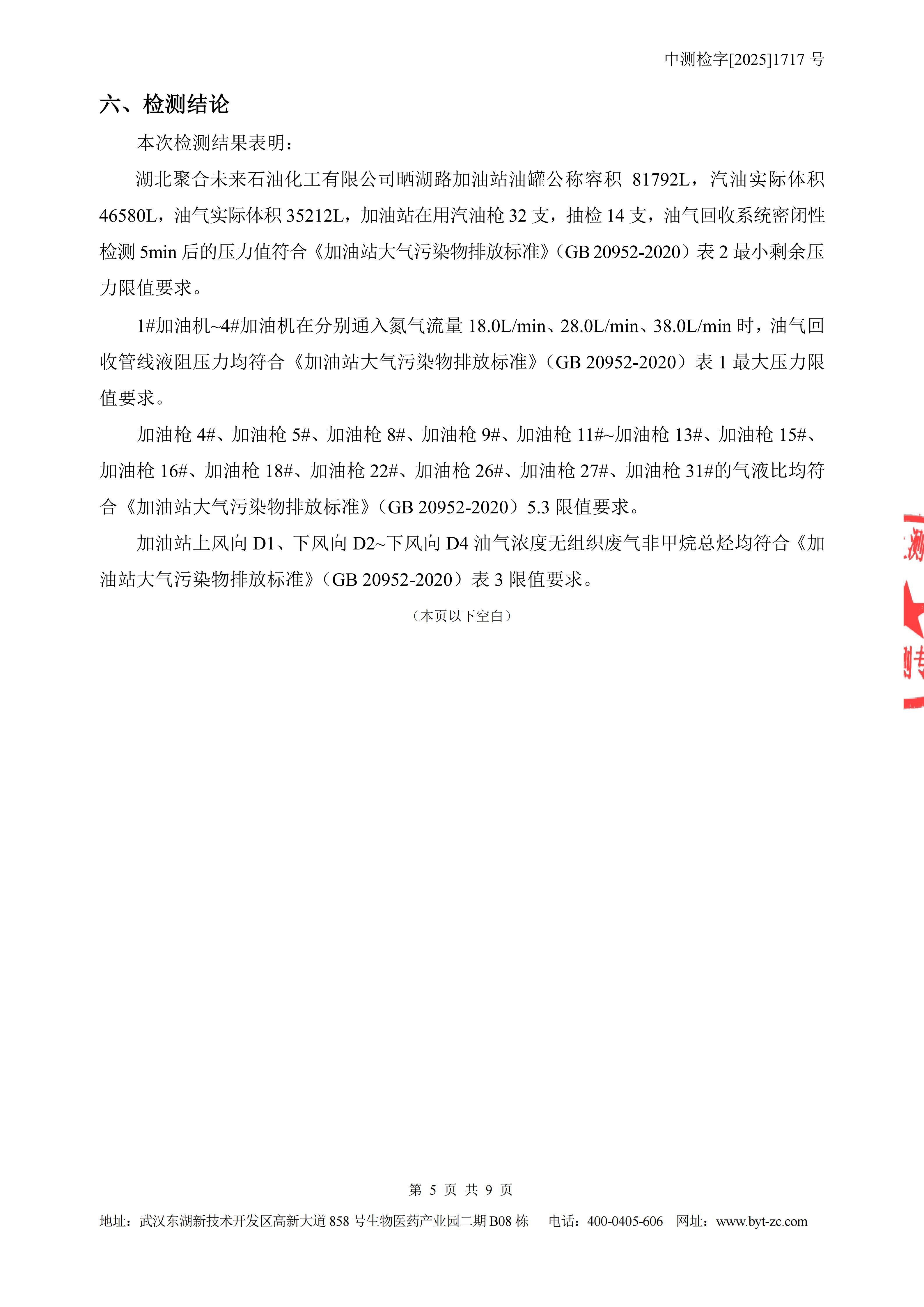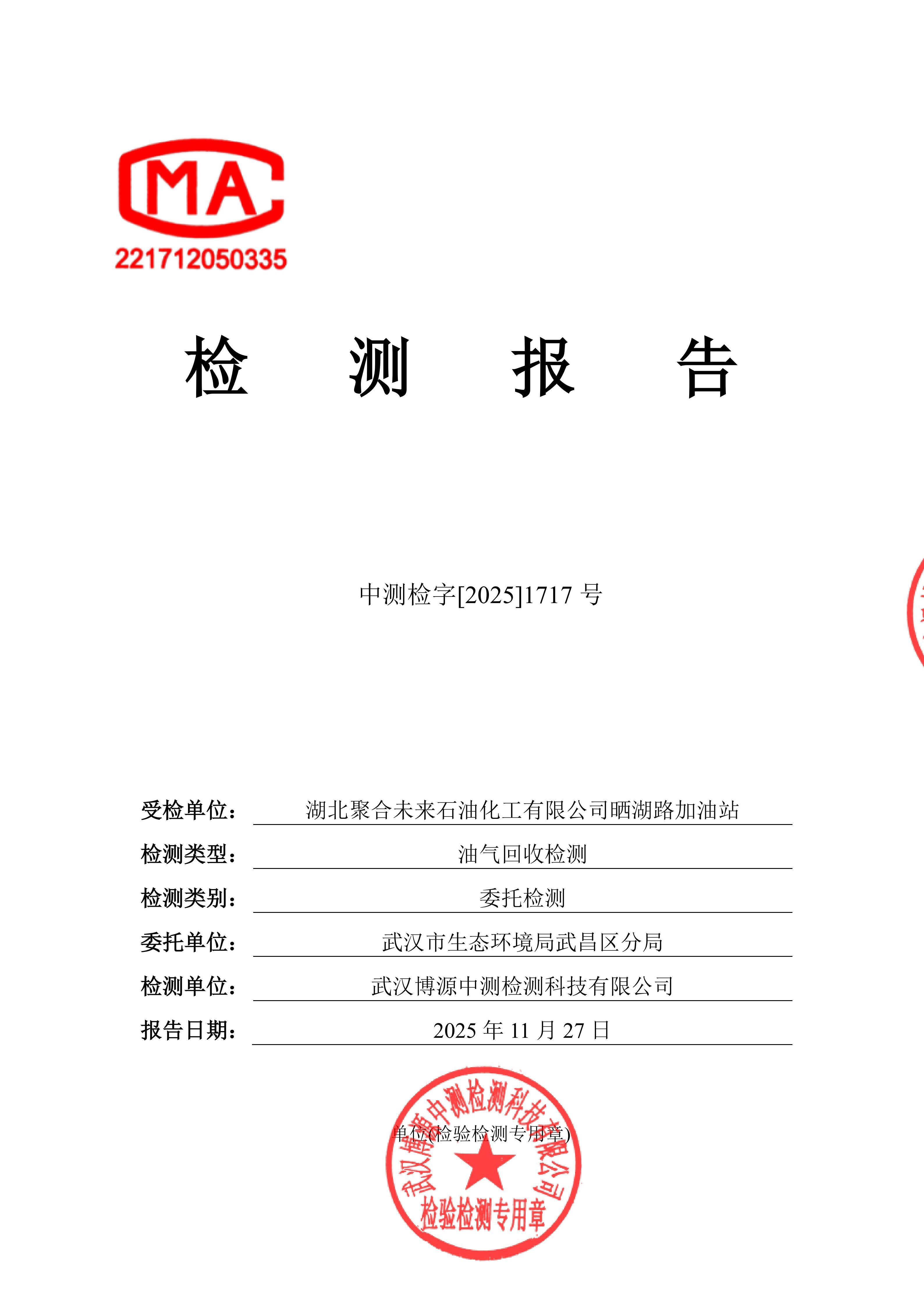 湖北聚合未来石油化工有限公司晒湖路加油站油气回收检测