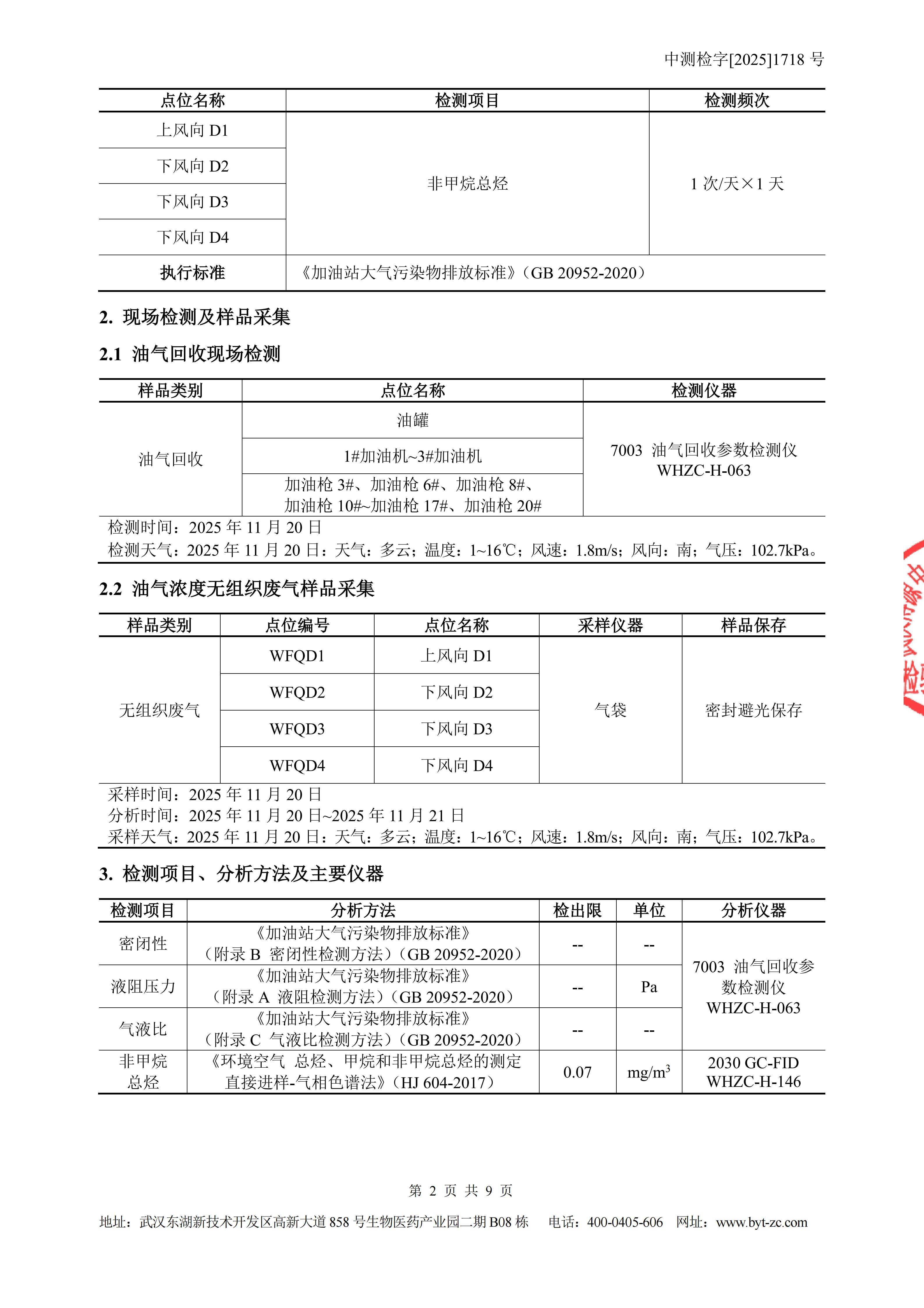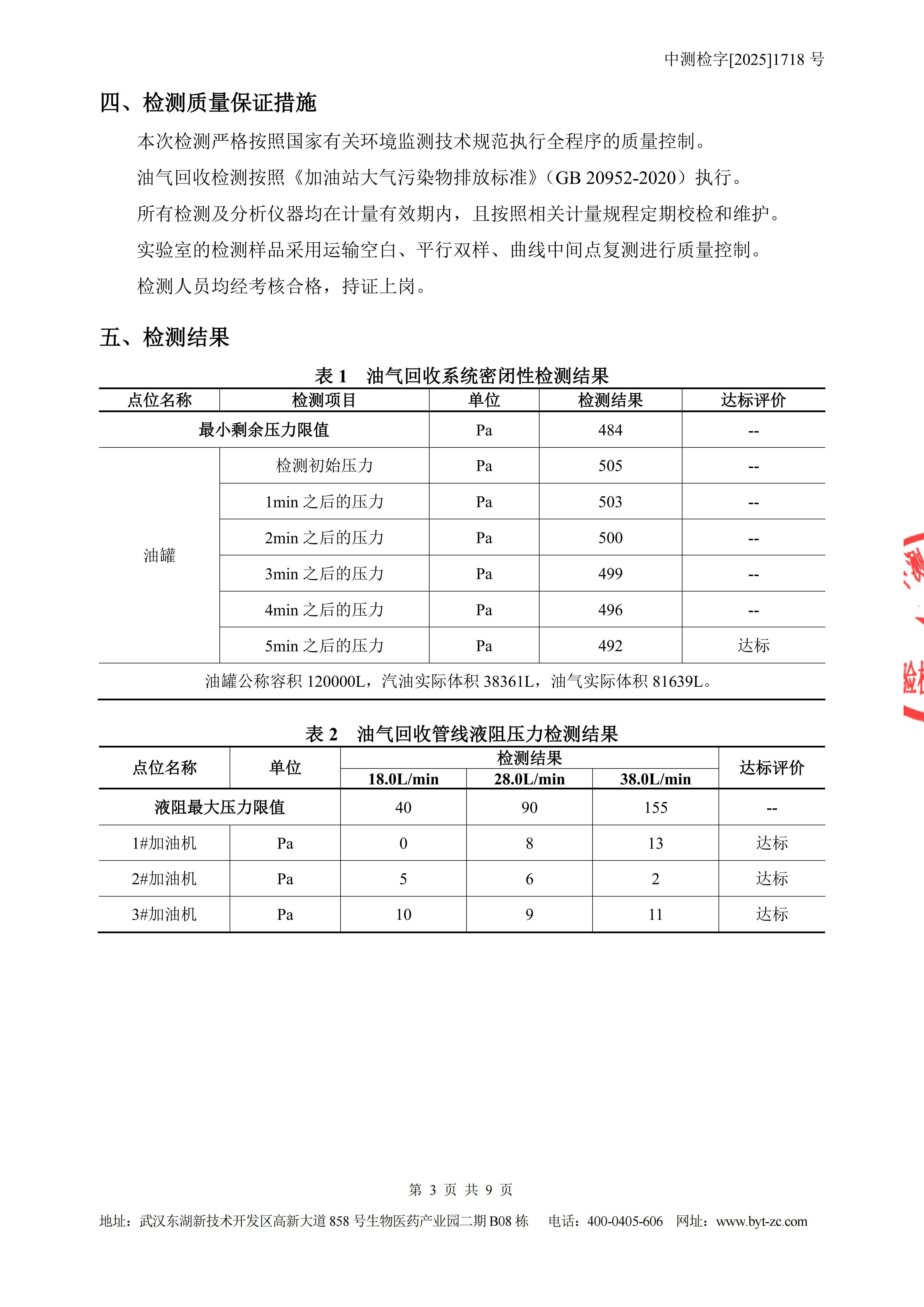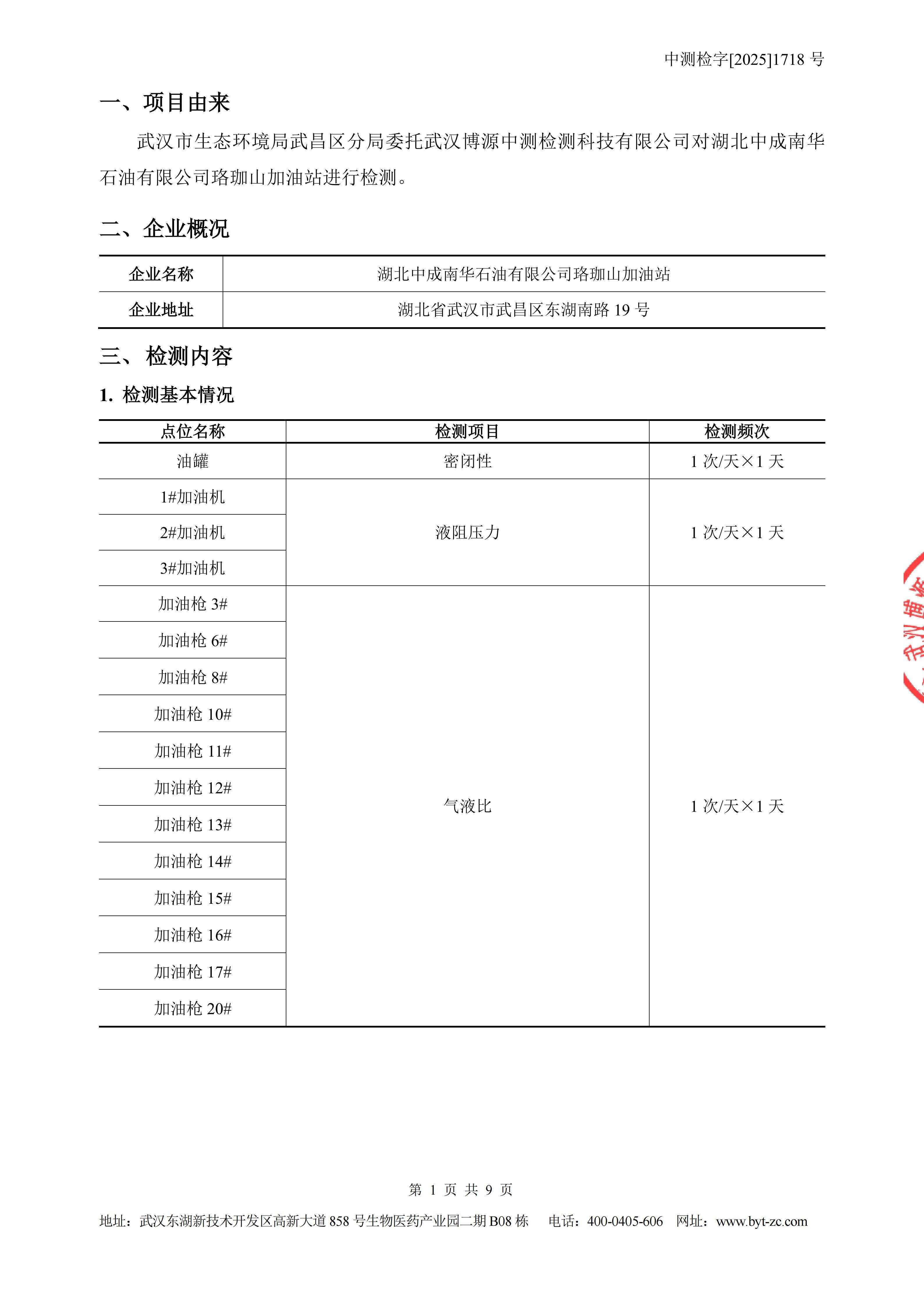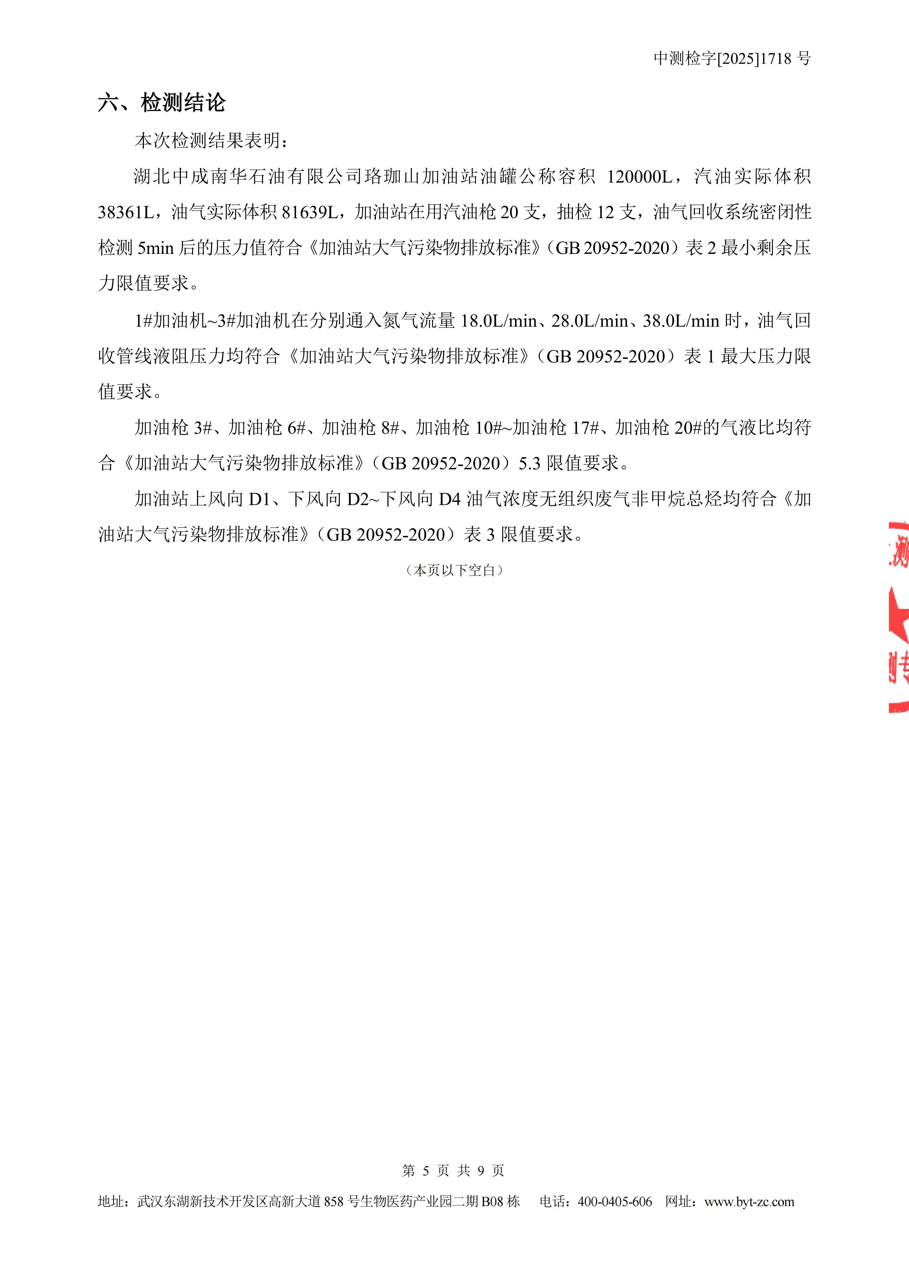 湖北中成南华石油有限公司珞珈山加油站油气回收检测