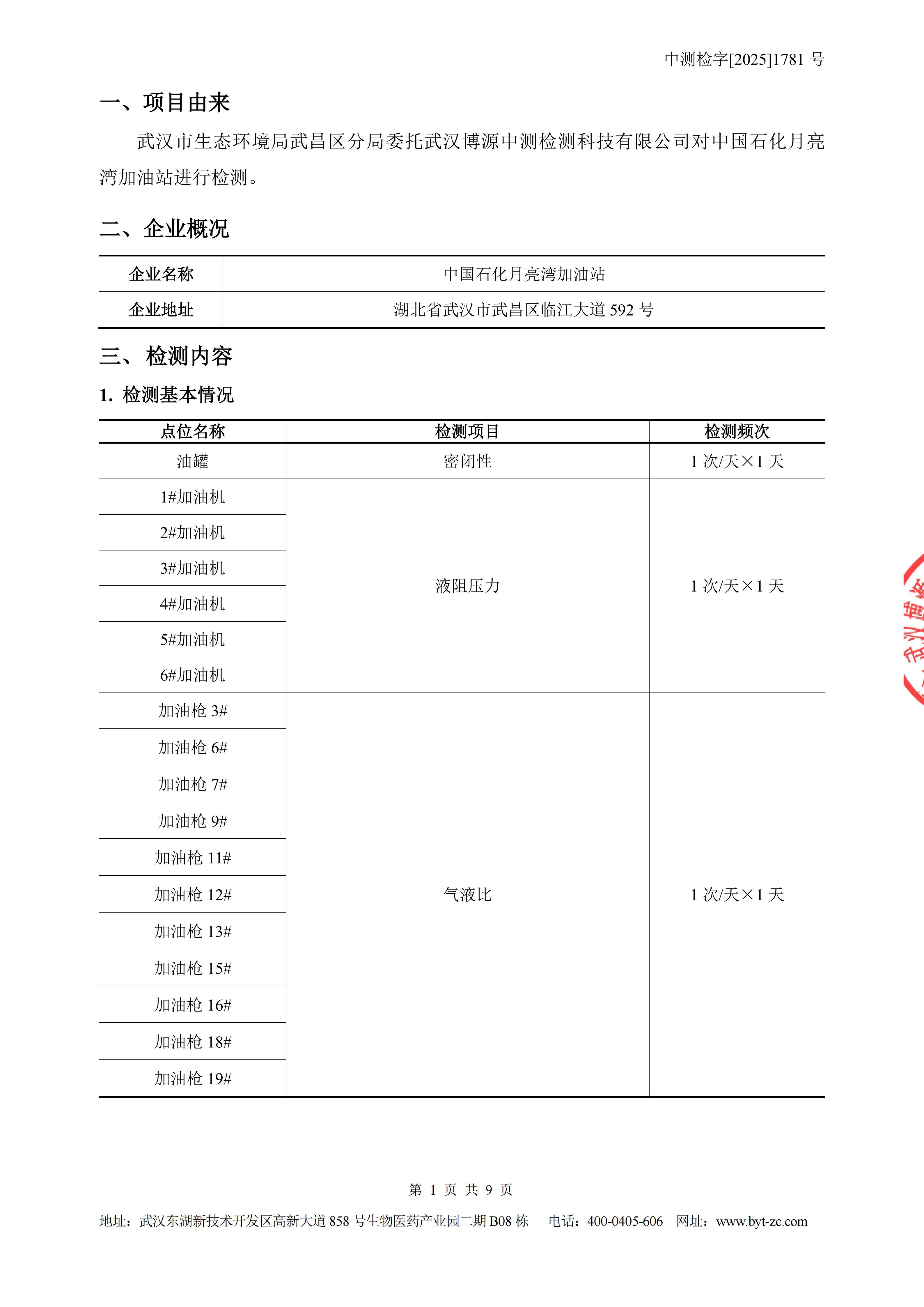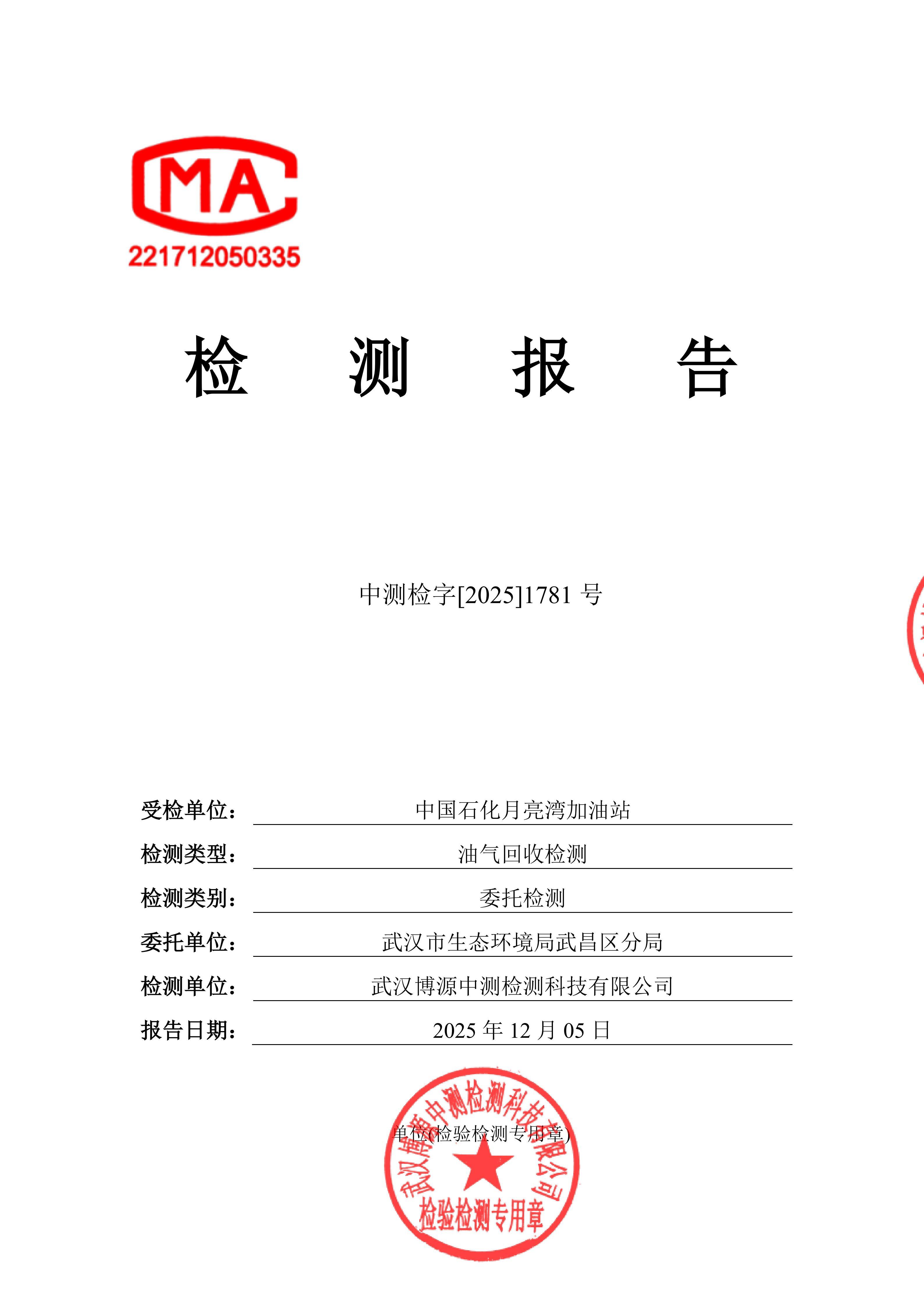 中国石化月亮湾加油站油气回收检测