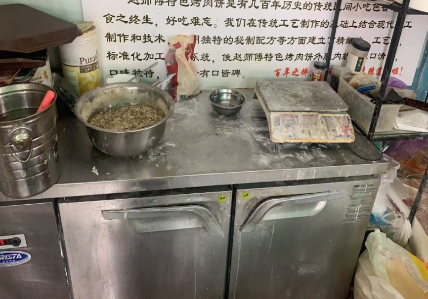 上榜理由:1、操作间脏乱,后厨顶面、墙面、地面油污厚重(如地板粘脚、桌面粘手,排风扇和厨具上油污重等);2、食材随意堆放且部分食材放置于地面,馅料无防护,食材清洗不到位;3、操作人员卫生防护不到位(未戴口罩、手套、发网等,赤膊);具设备清洁不到位,食品容器清洁不到位;4、三防设施缺失,无灭蝇灯、风幕机、防鼠防蝇设施。