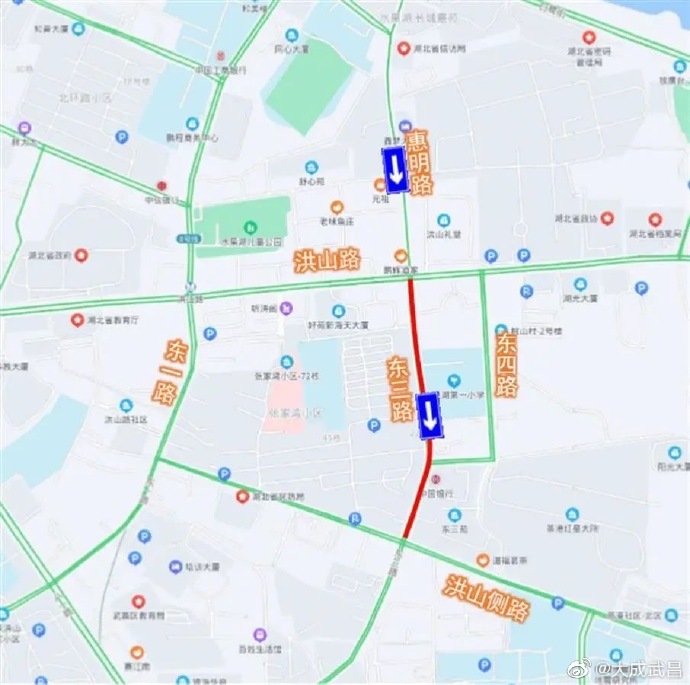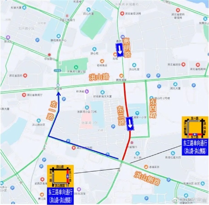 #武昌交通# 【今起,水果湖东三路通行方式有变化】2月7日,从武汉交管部门获悉,因为道路施工,2月8日至4月30日,武昌区水果湖东三路(洪山路至洪山侧路)改为单向通行:机动车一律由北向南(洪山路往洪山侧路方向)单向通行。