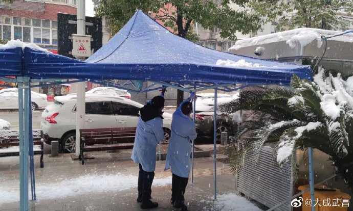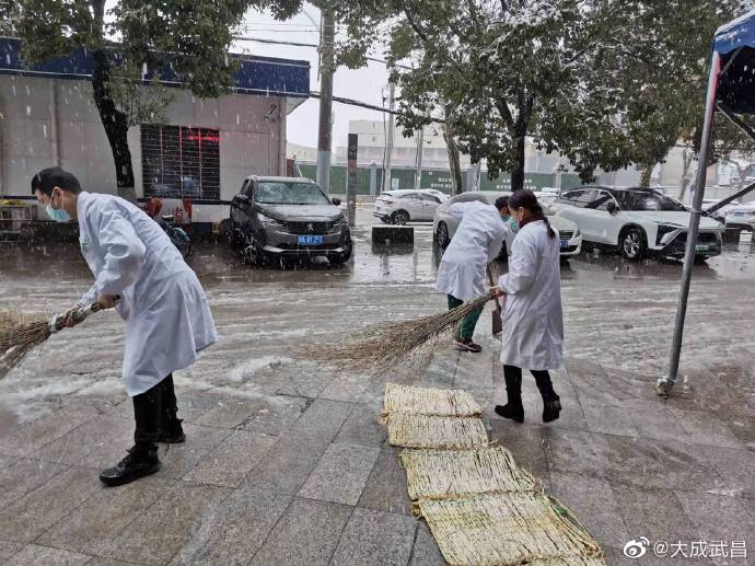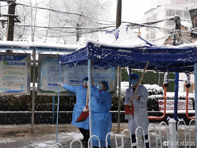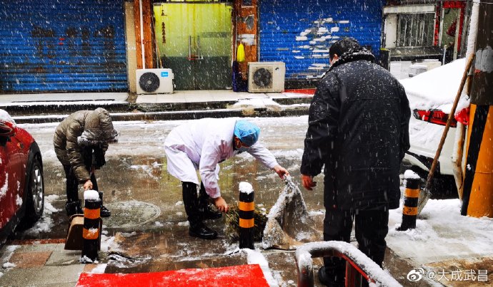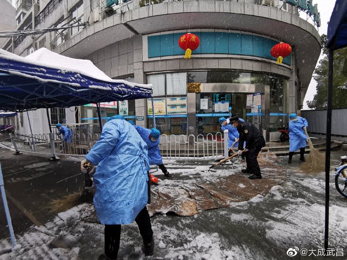 #扫雪进行时# #虎年开工第一天# 【武昌区卫健局积极应对暴雪天气,提前防范部署和加强排查!】7日,武昌区卫健局组织各医疗机构及时清扫门前积雪,铺设防滑草垫,做好防滑提示和就医引导,大家齐心协力铲出了一条安全、干净的道路,有效保证了单位职工和就医患者安全通行。