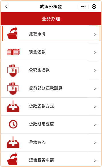 (3)选择“提取申请”,根据自身情况选择提取类型