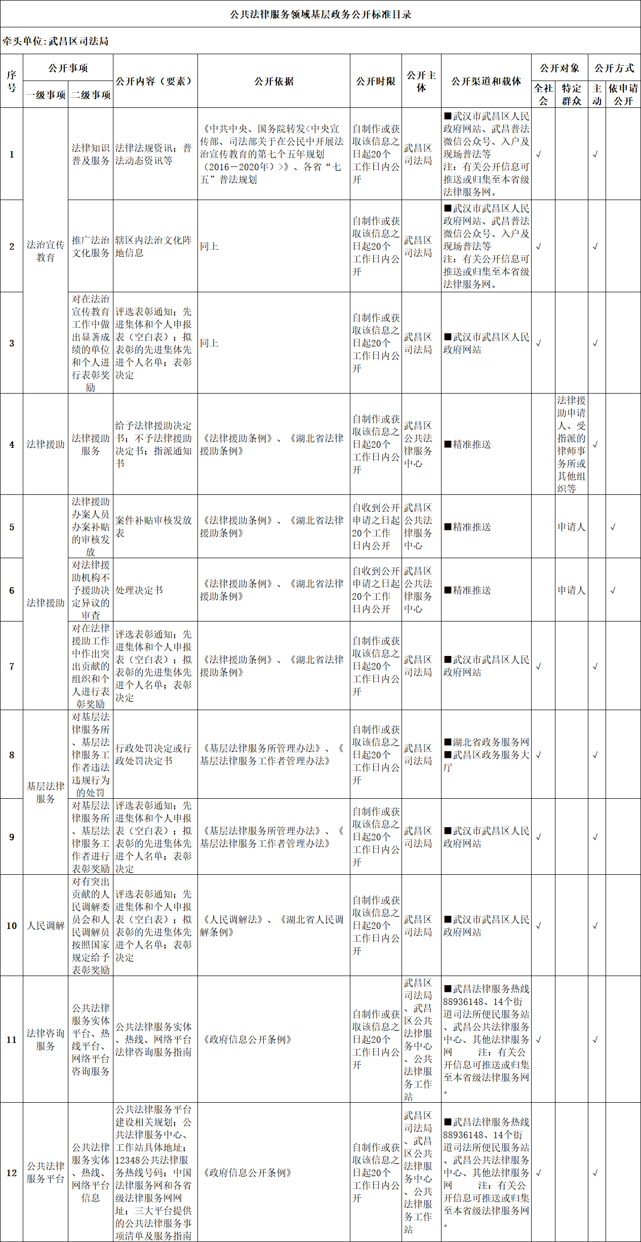 武昌公共法律服务领域基层政务公开标准目录