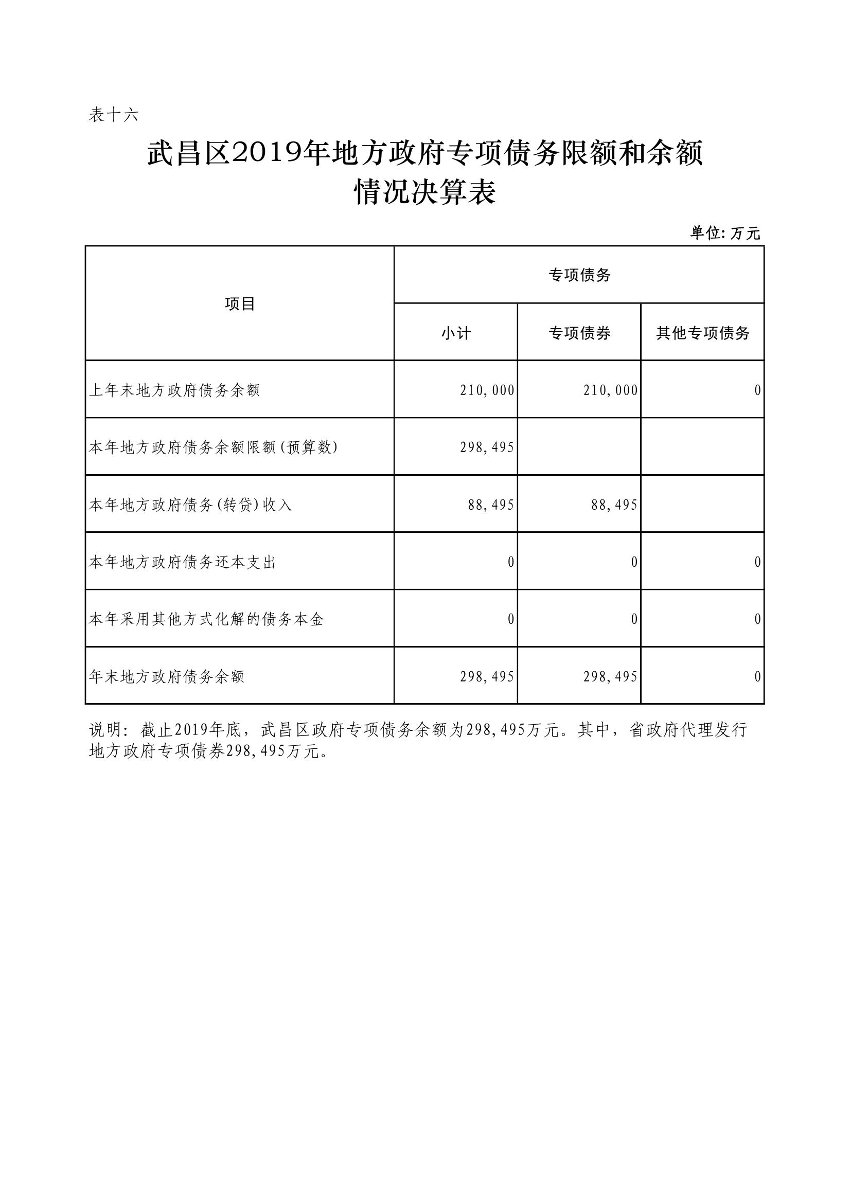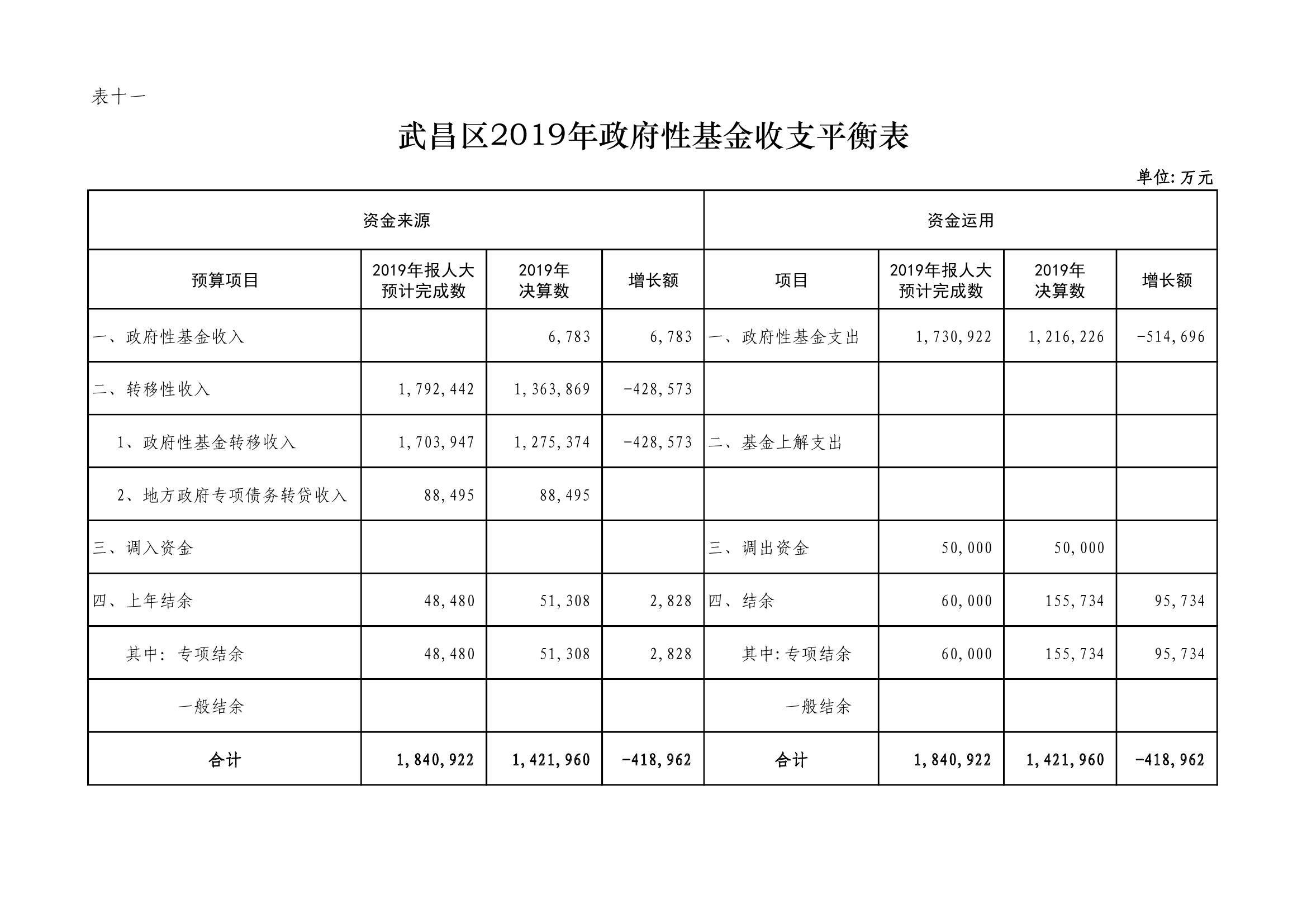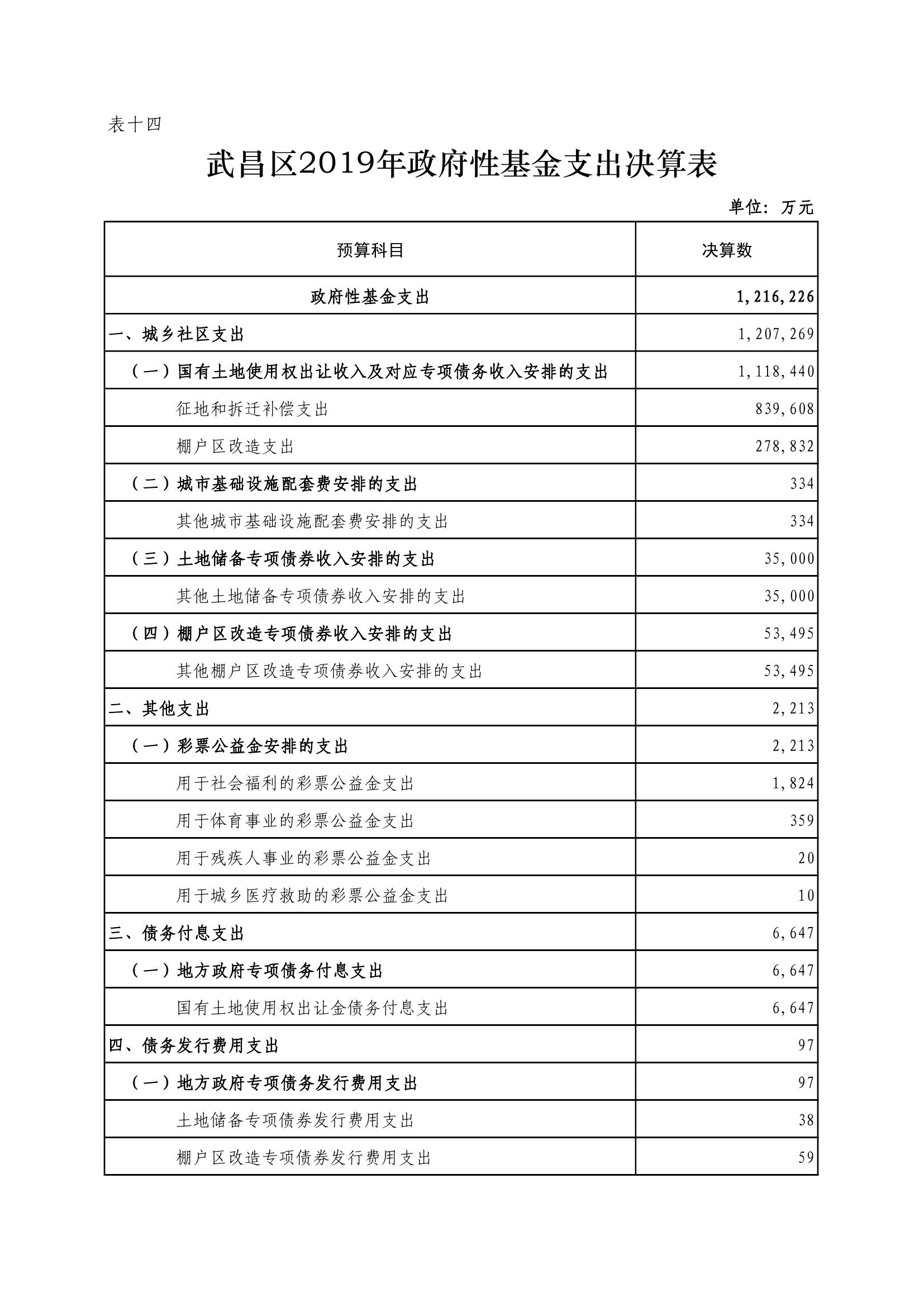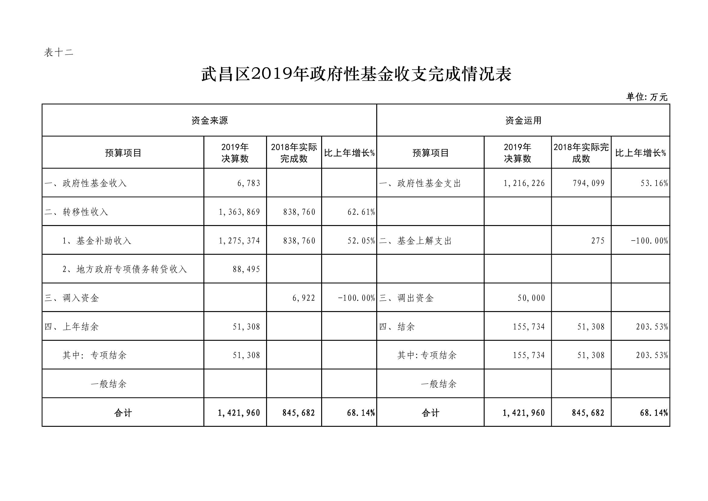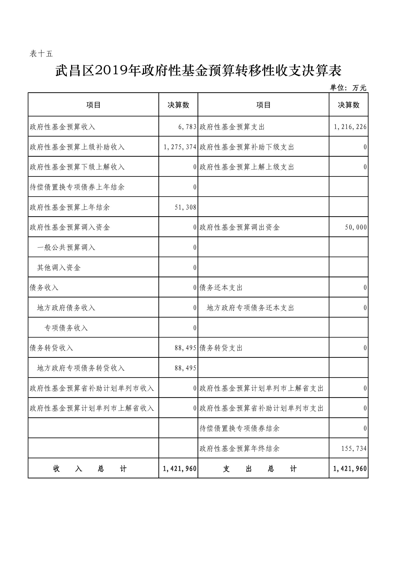 武昌区2019年政府性基金预算收支决算公开表格