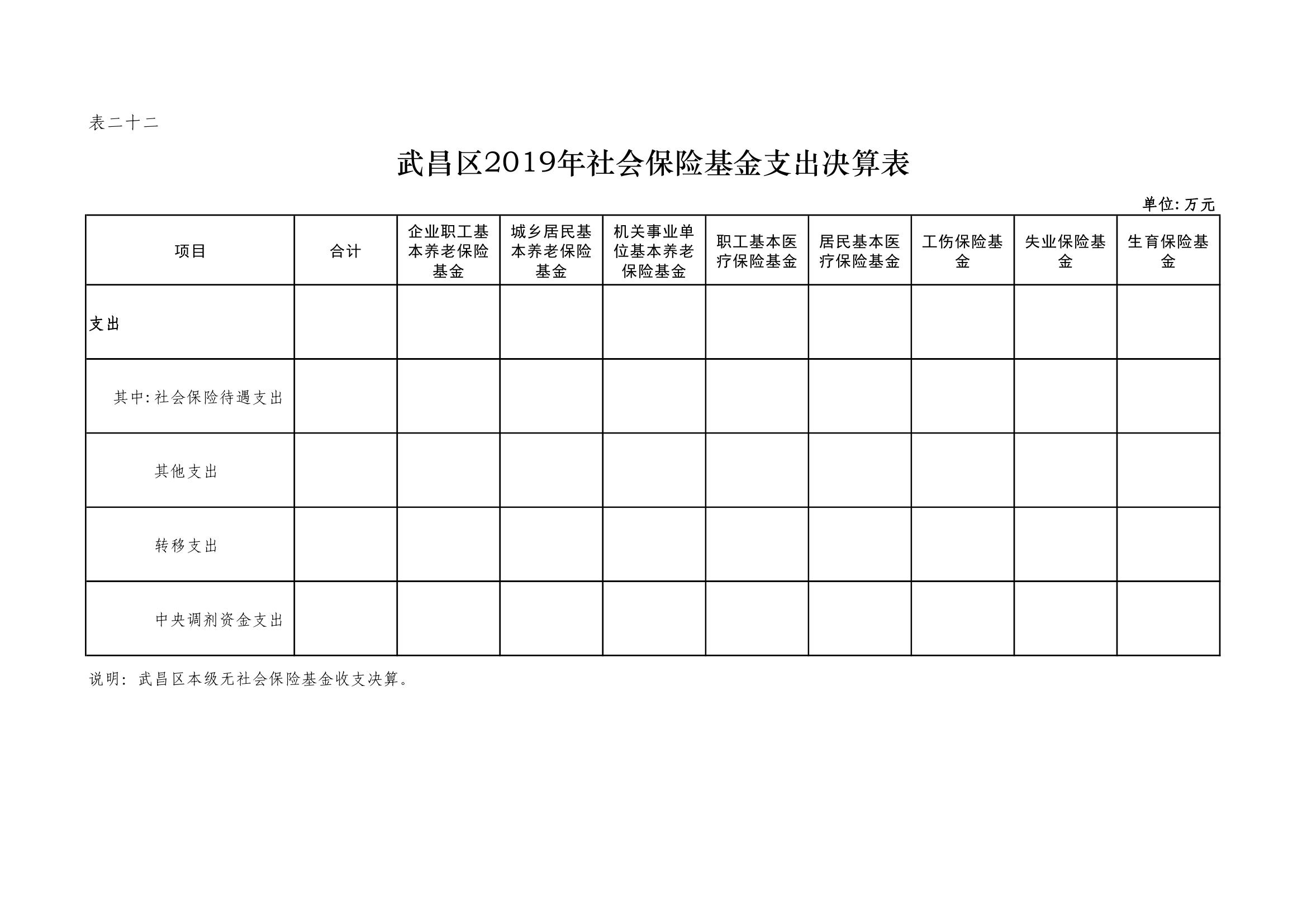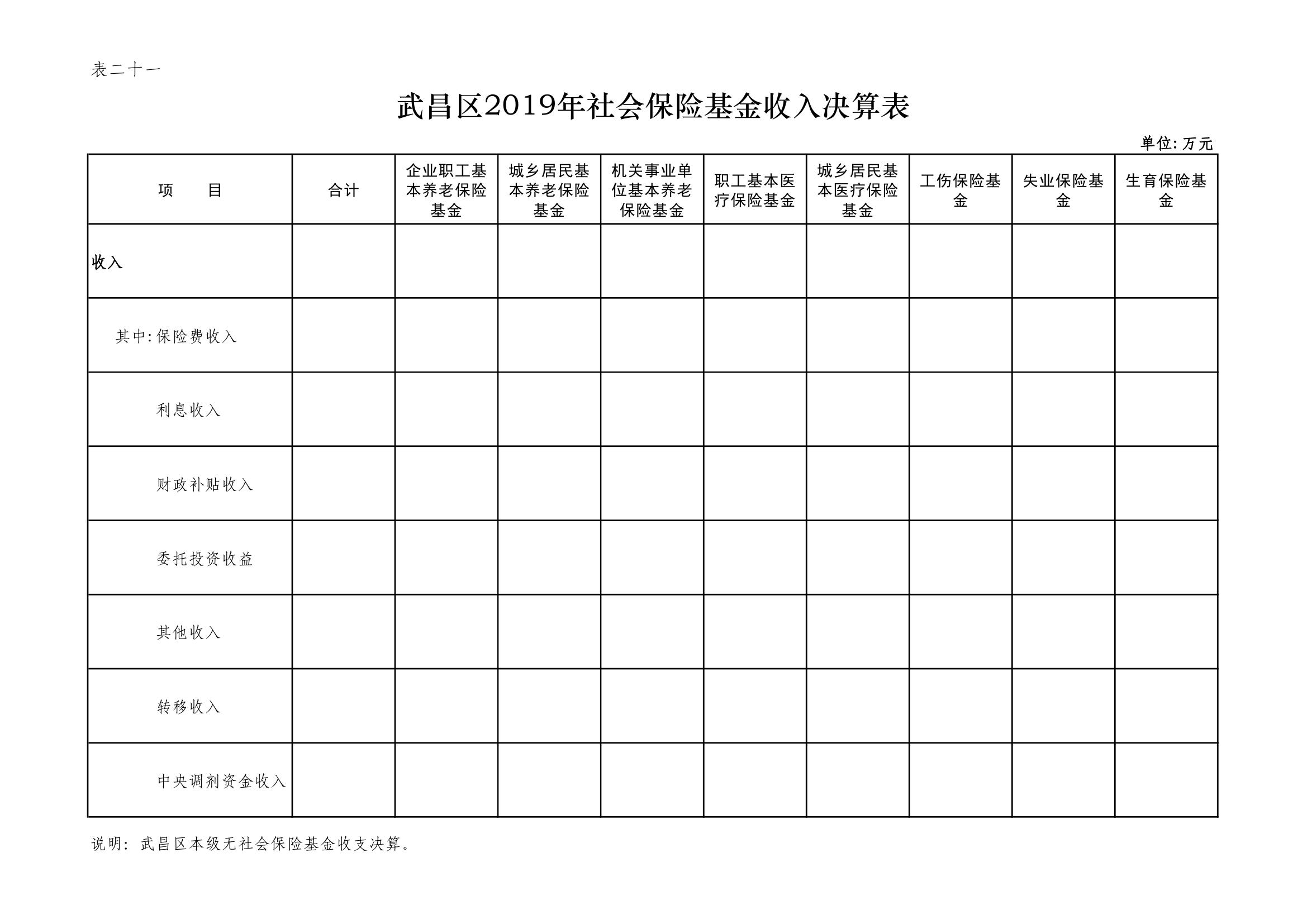 武昌区2019年社会保险基金收支决算公开表格