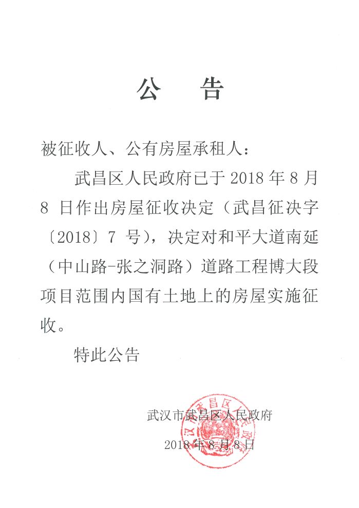 和平大道南延(中山路-张之洞路)道路工程博大段项目公告