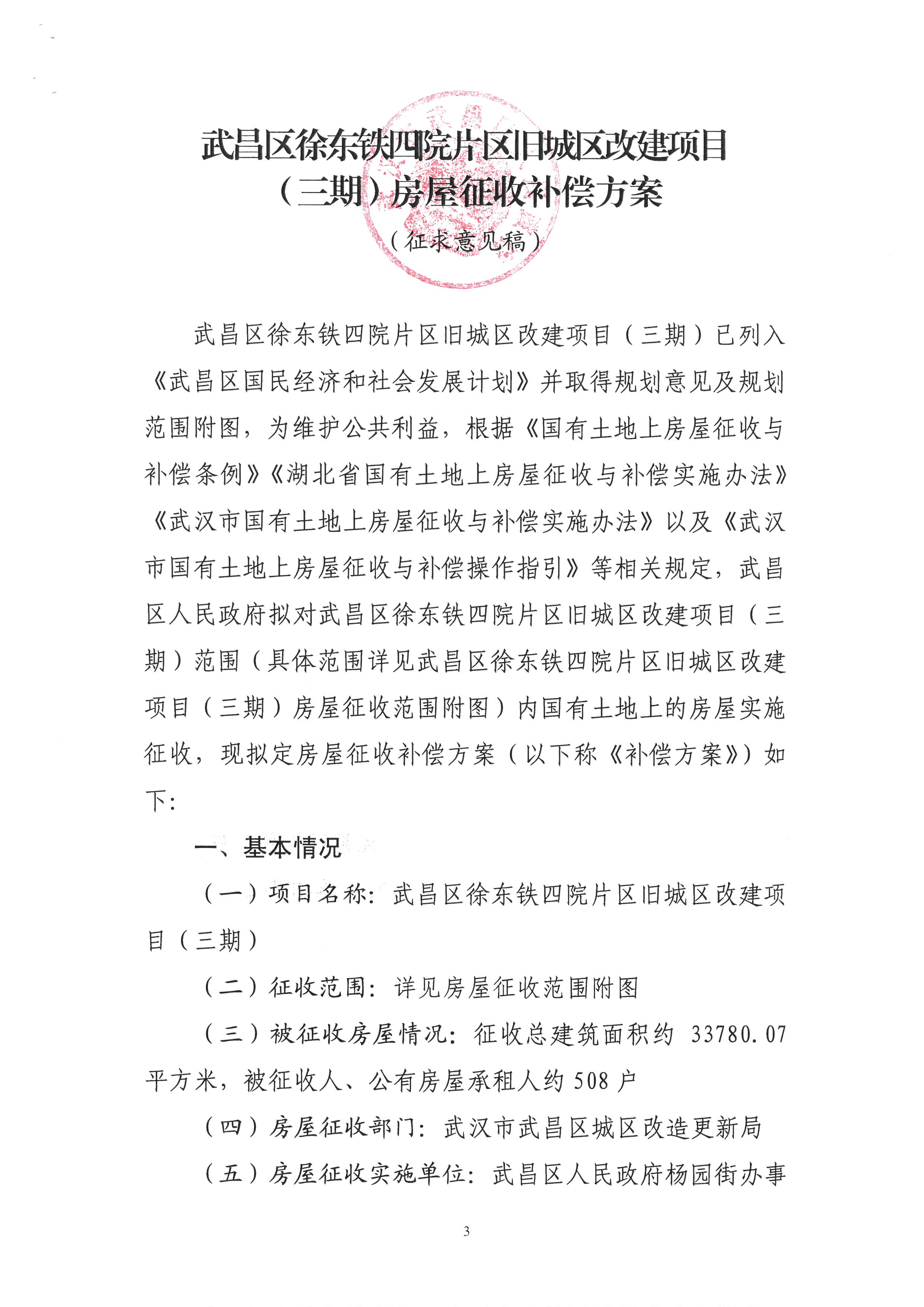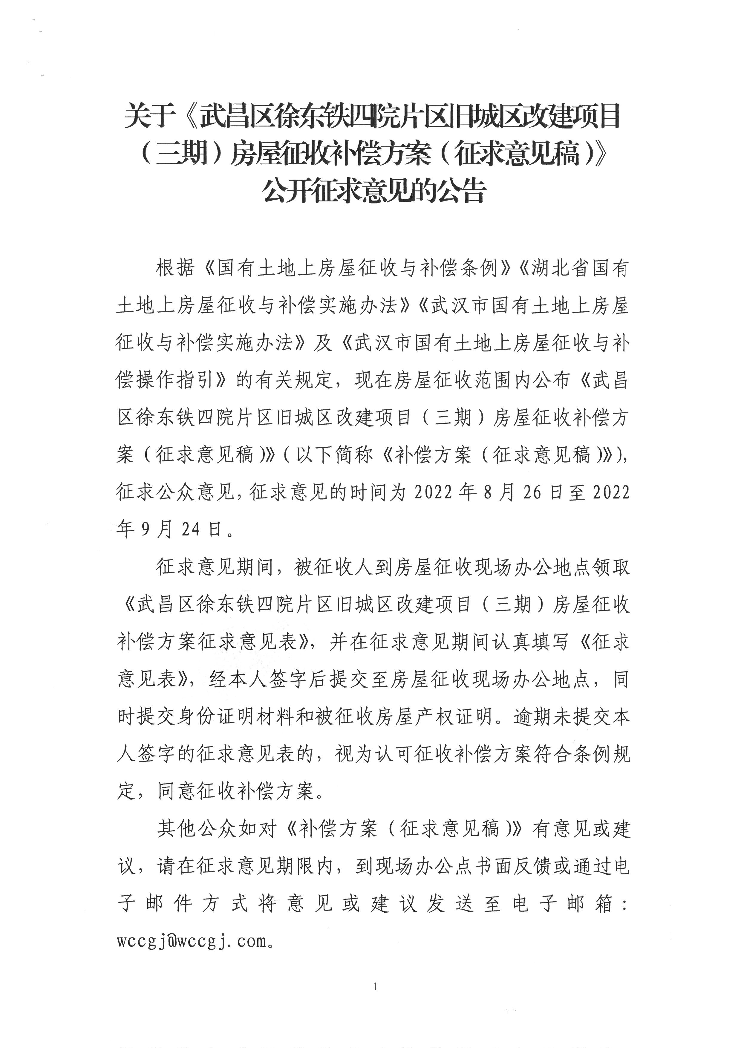 关于《武昌区徐东铁四院片区旧城区改建项目(三期)房屋征收补偿方案(征求意见稿)》公开征求意见的公告