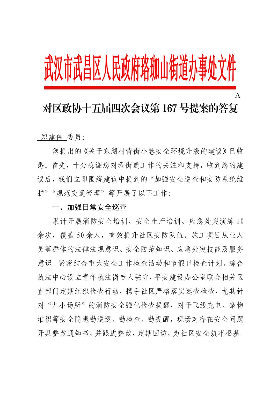 对区政协十五届四次会议第167号提案的答复