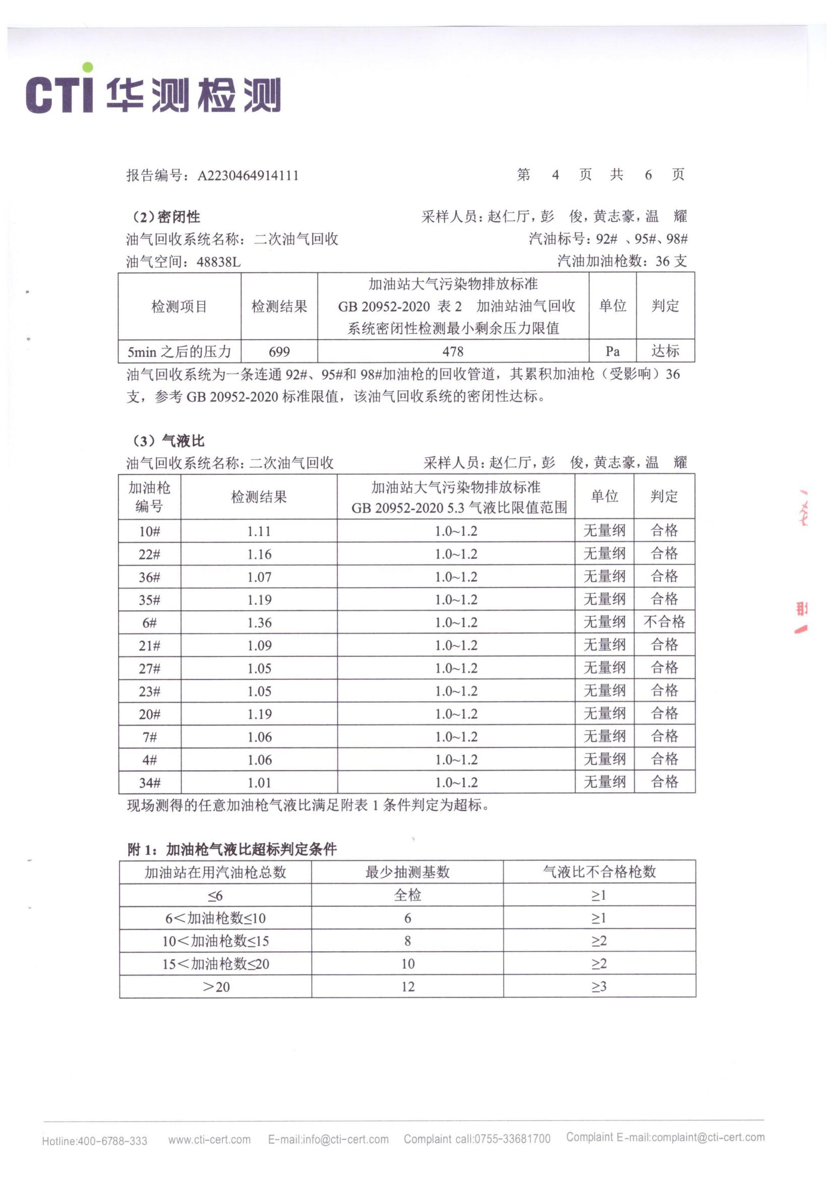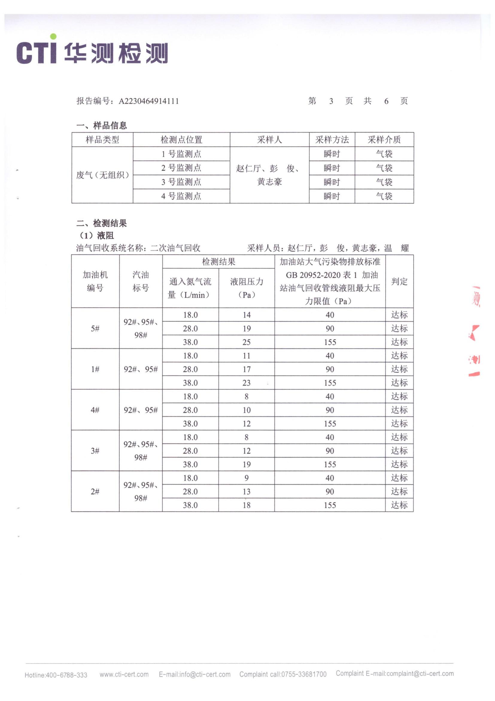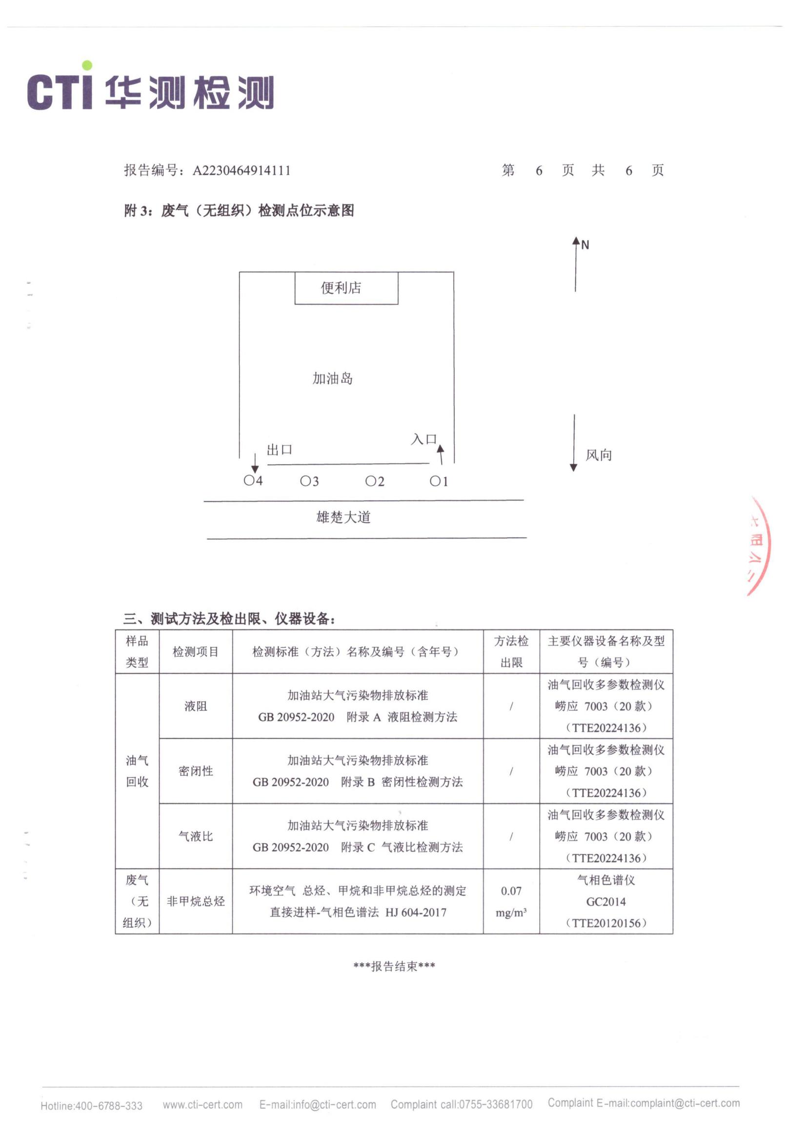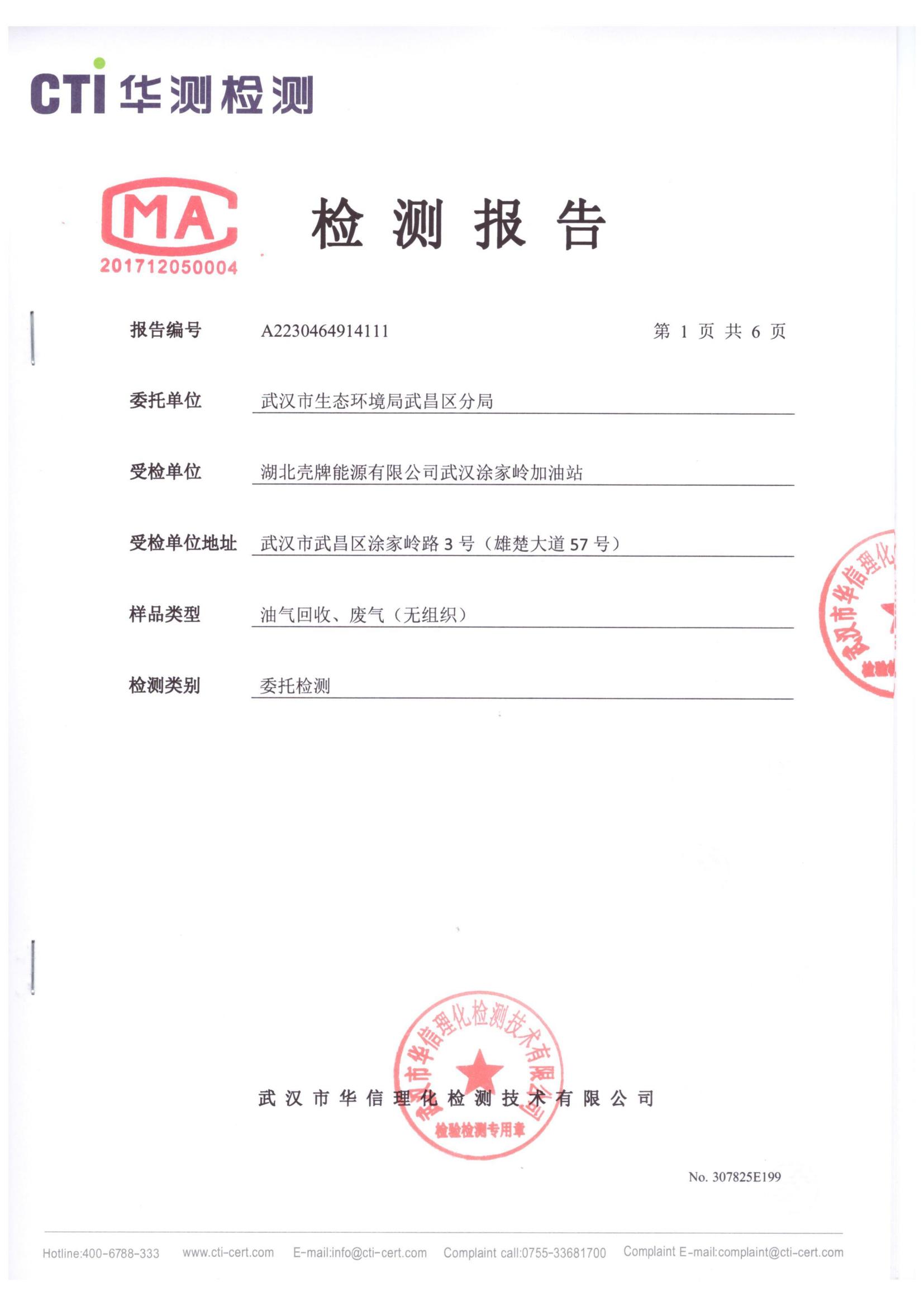 湖北壳牌能源有限公司武汉涂家岭加油站废气监测报告