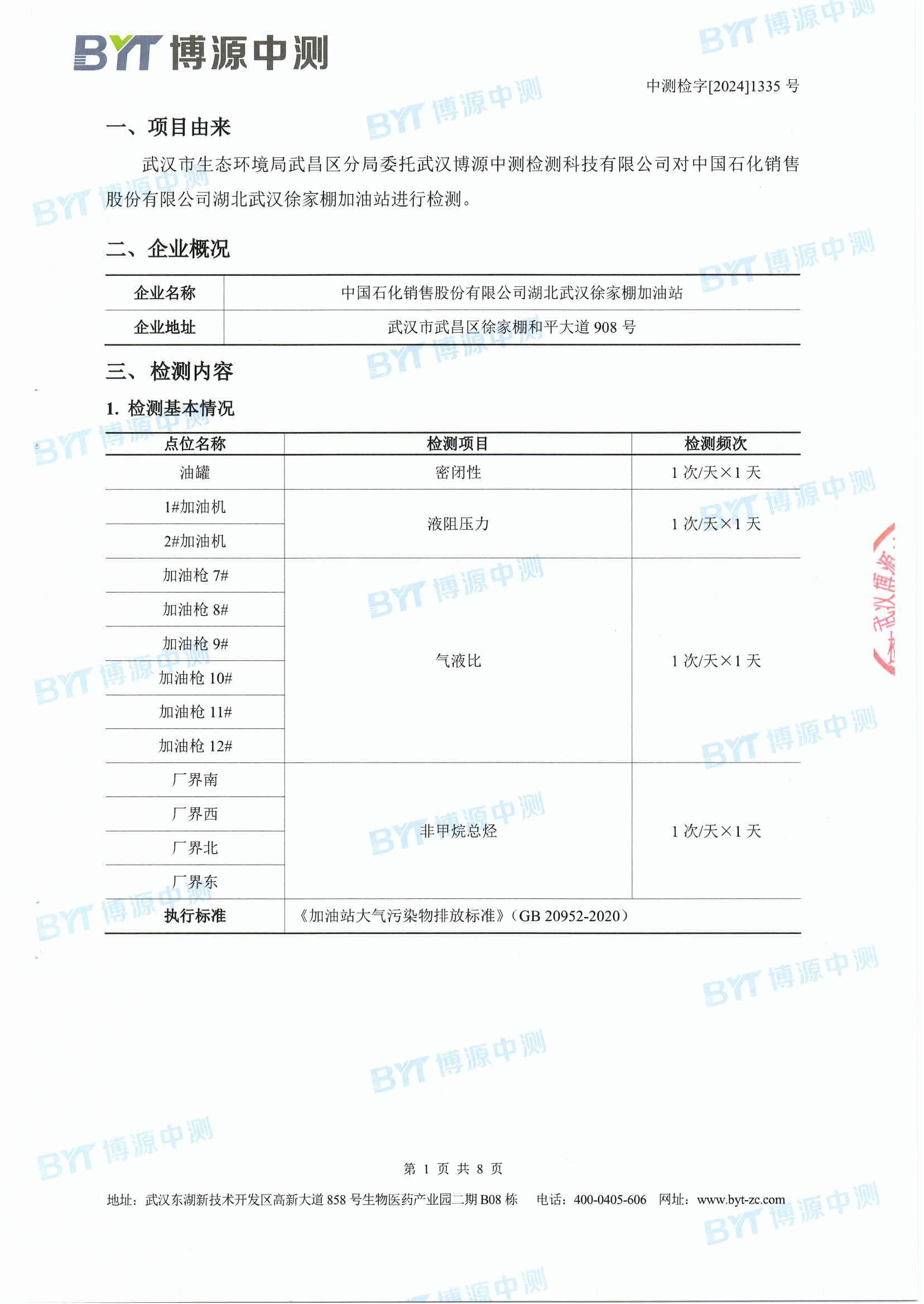 中国石化销售股份有限公司湖北武汉徐家棚加油站油气回收检测