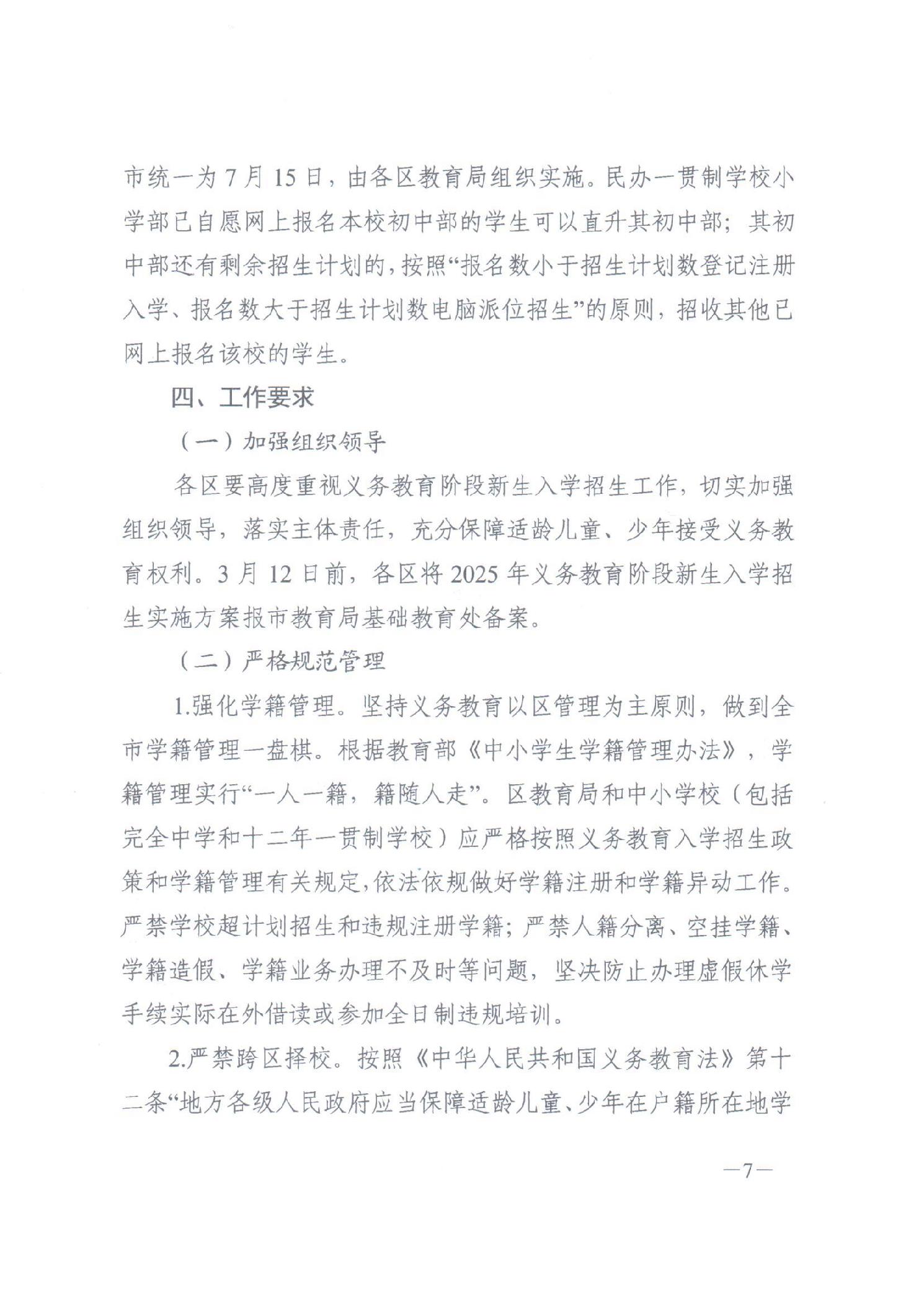 市教育局关于做好2025年义务教育阶段新生入学招生工作的通知