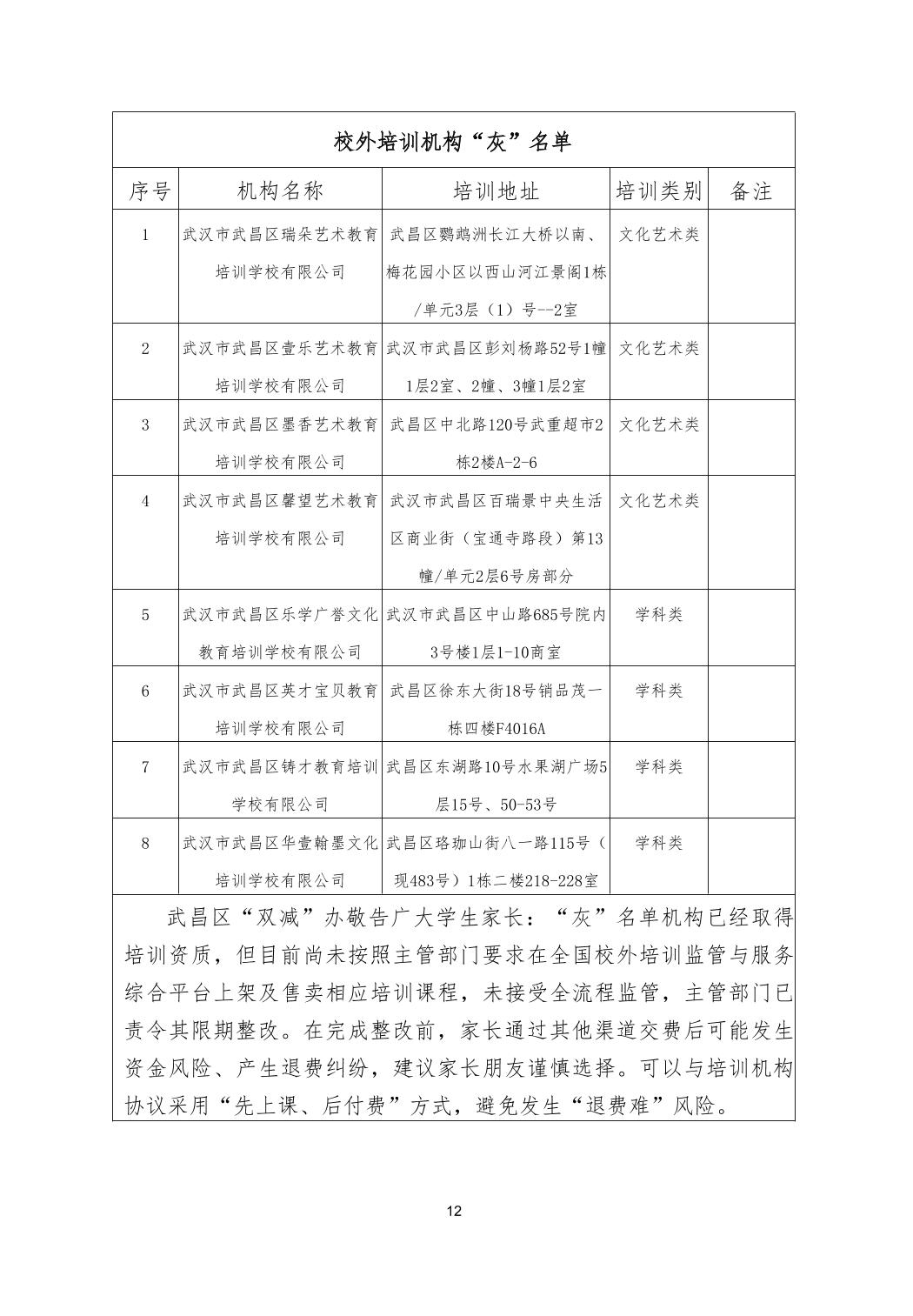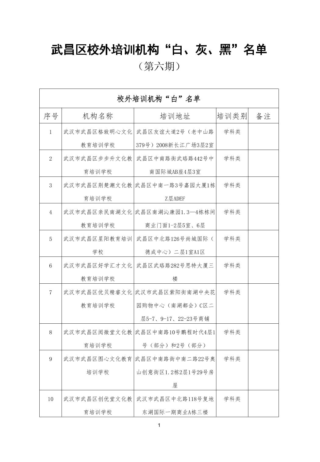 武昌区校外培训机构“白、灰、黑”名单(2025.6.23)(第六期)