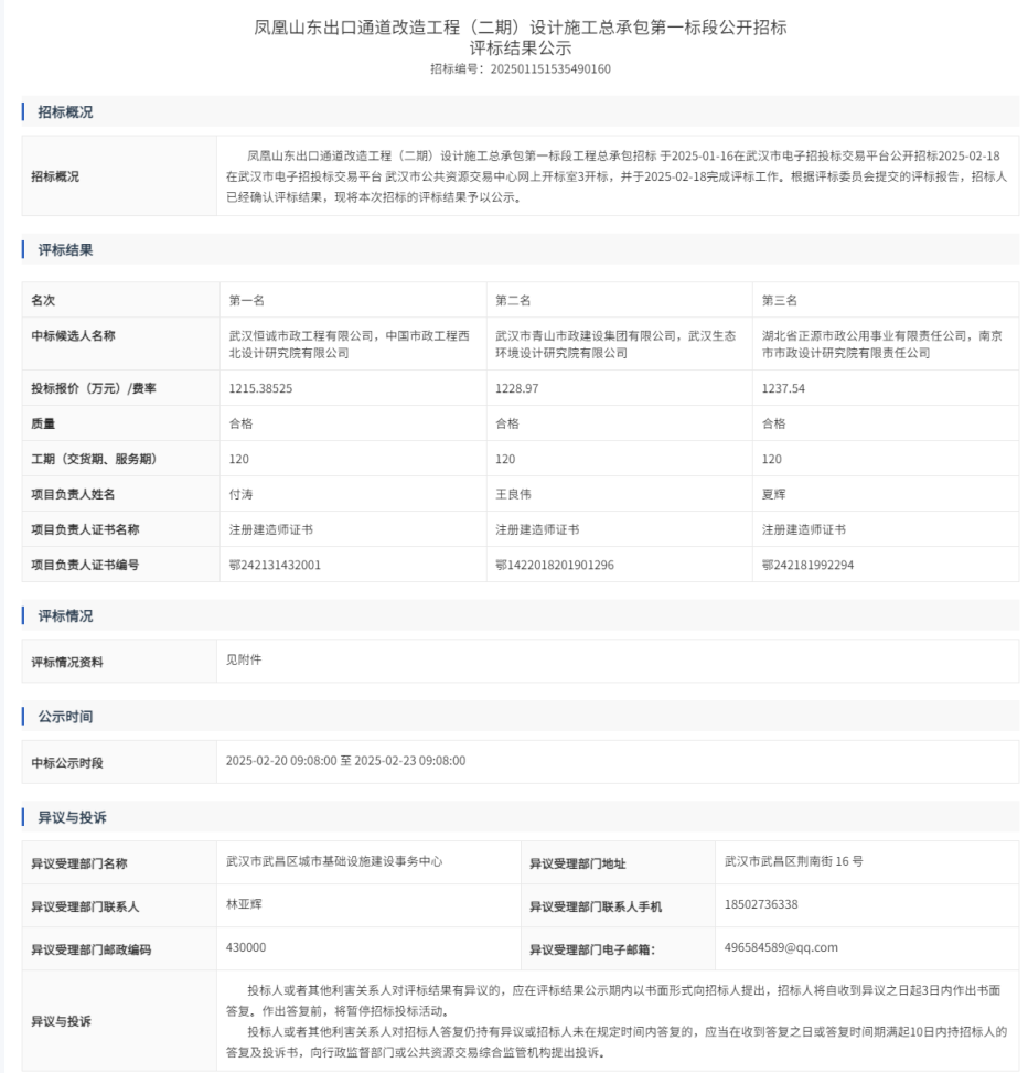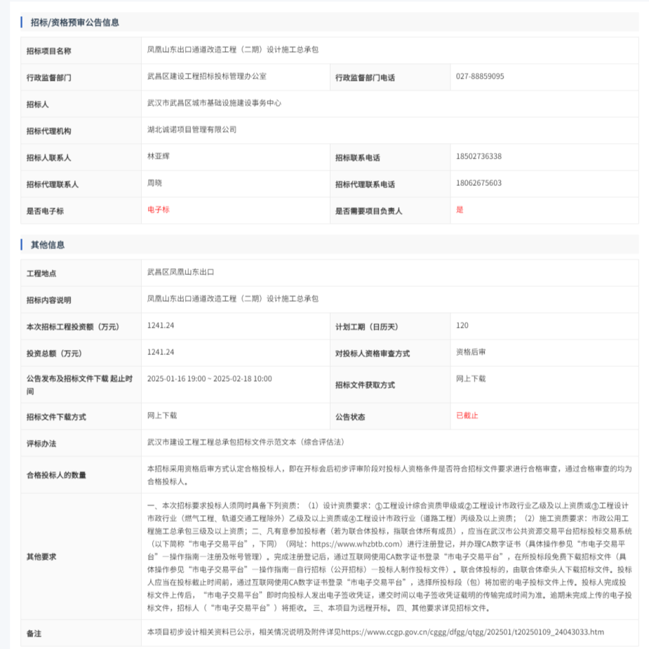 凤凰山东出口通道改造工程(二期)设计施工总承包