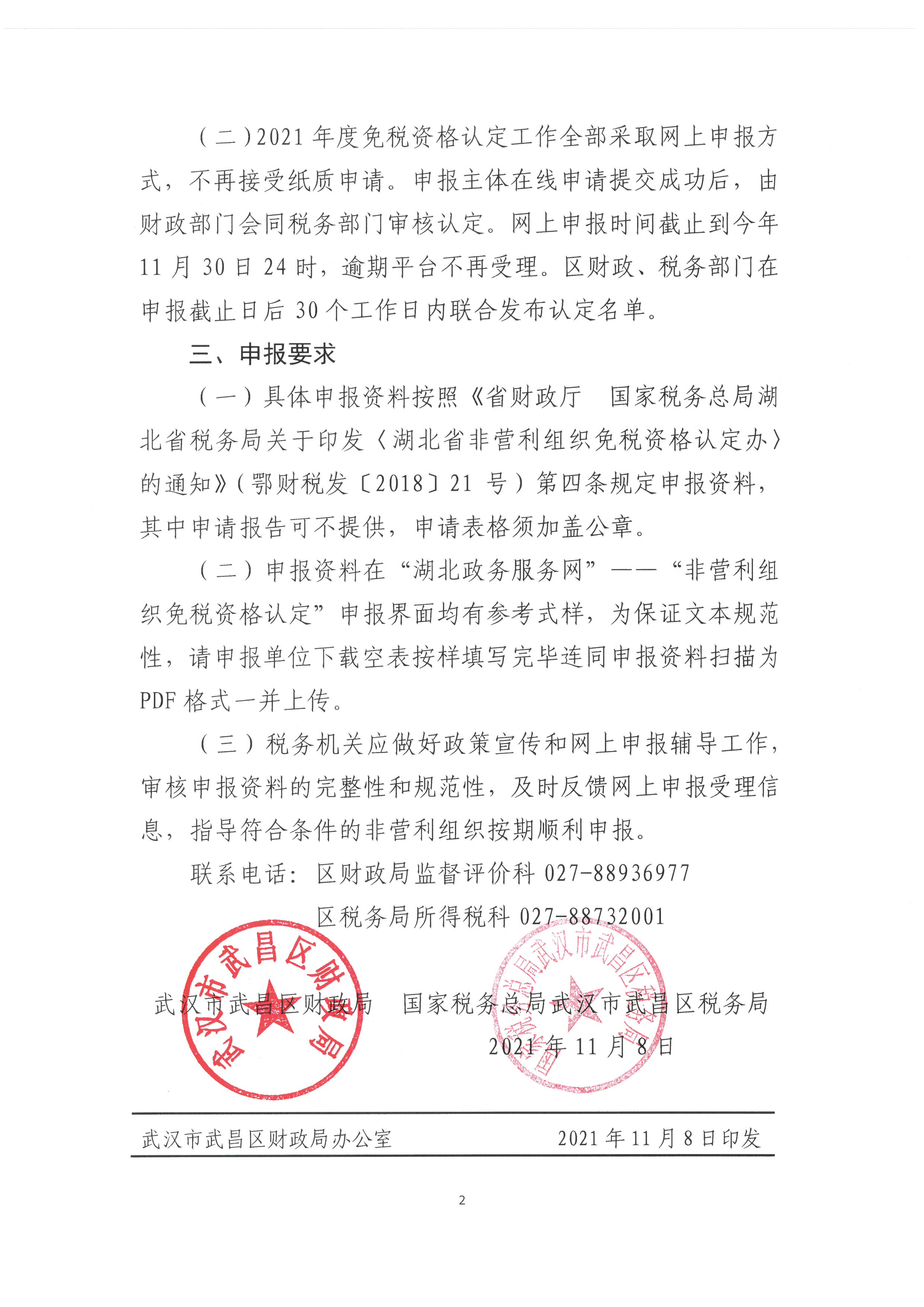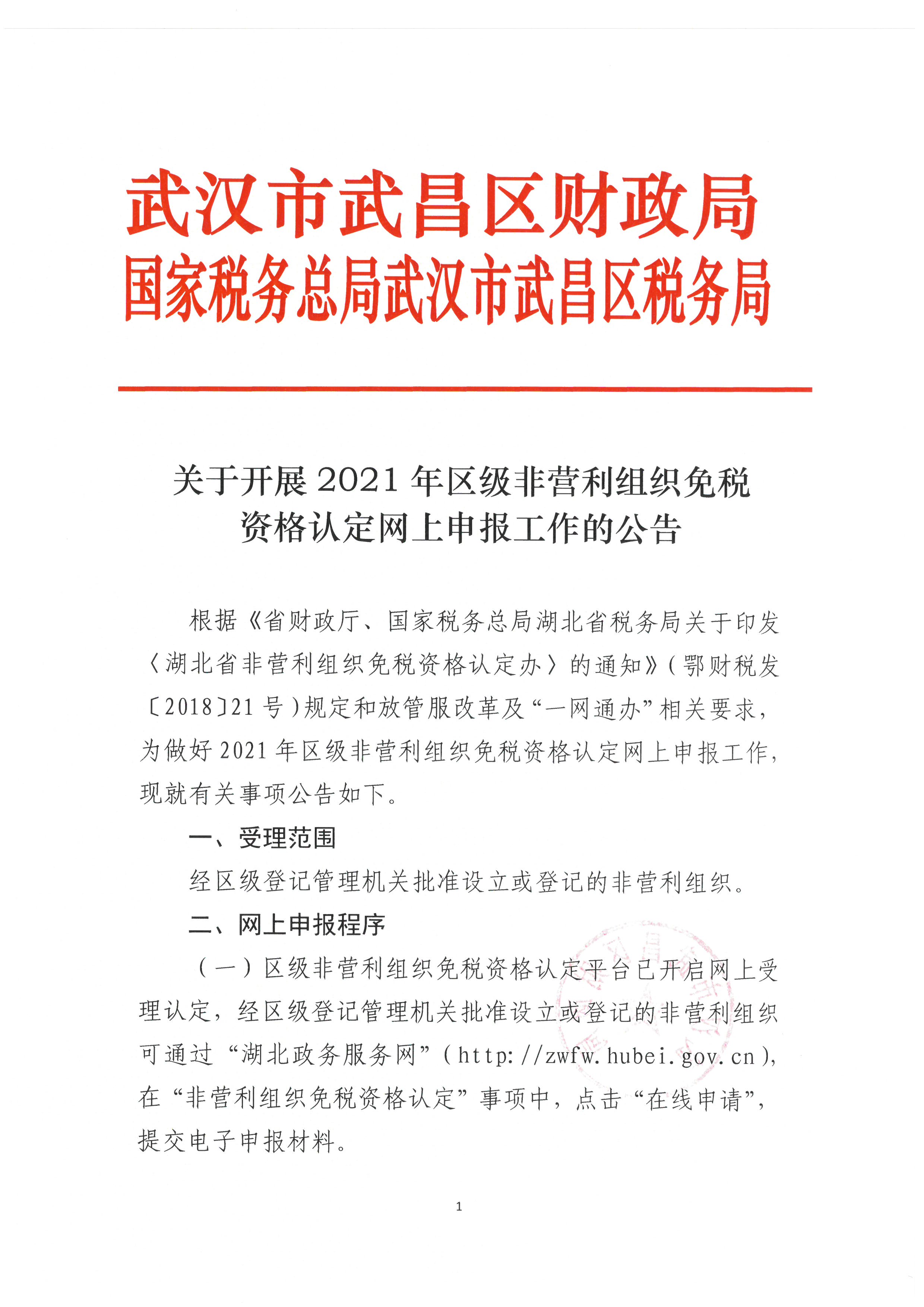 关于开展2021年区级非营利性组织免税资格认定网上申报工作的公告