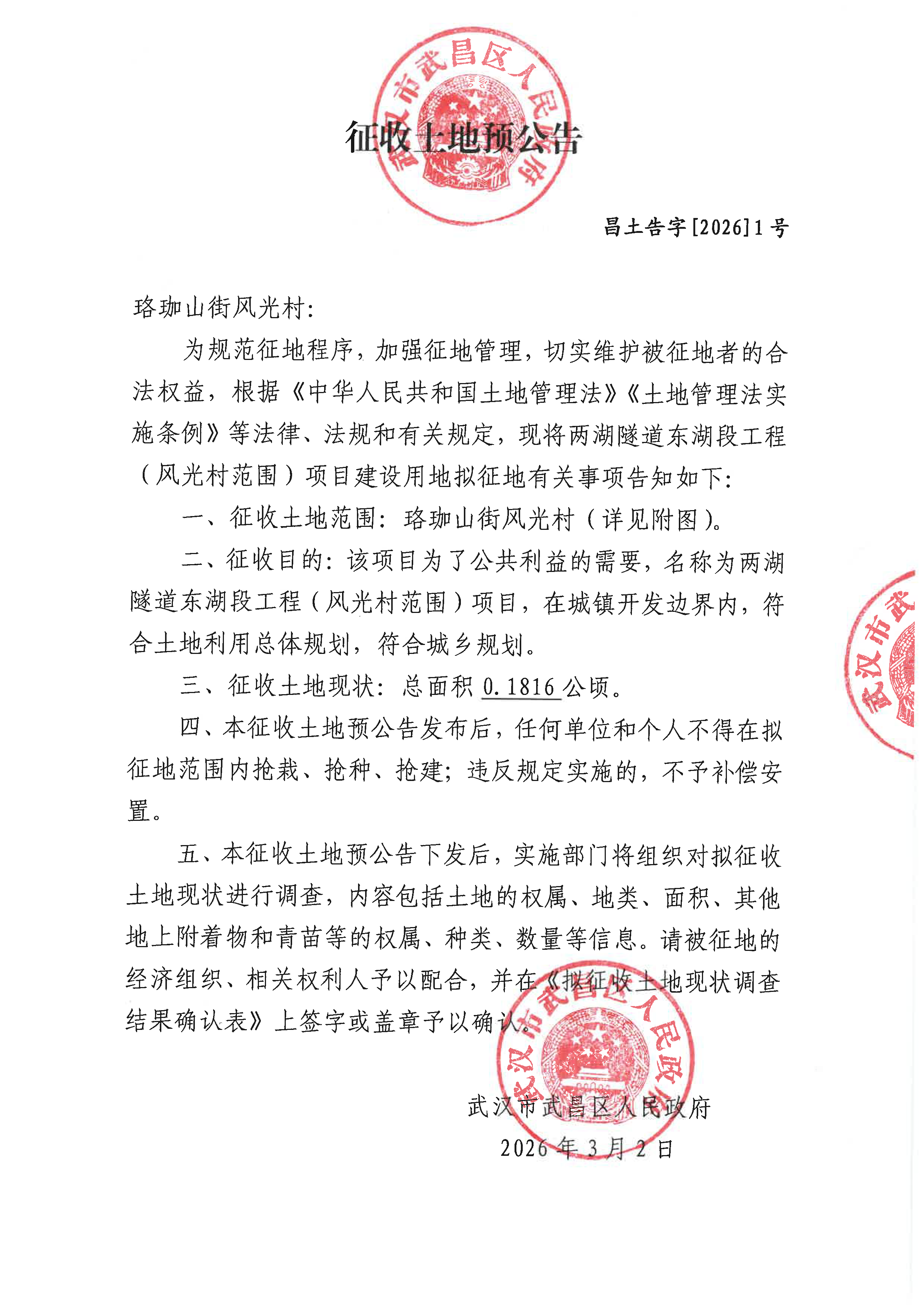 征收土地预公告(昌土告字[2026]1号)