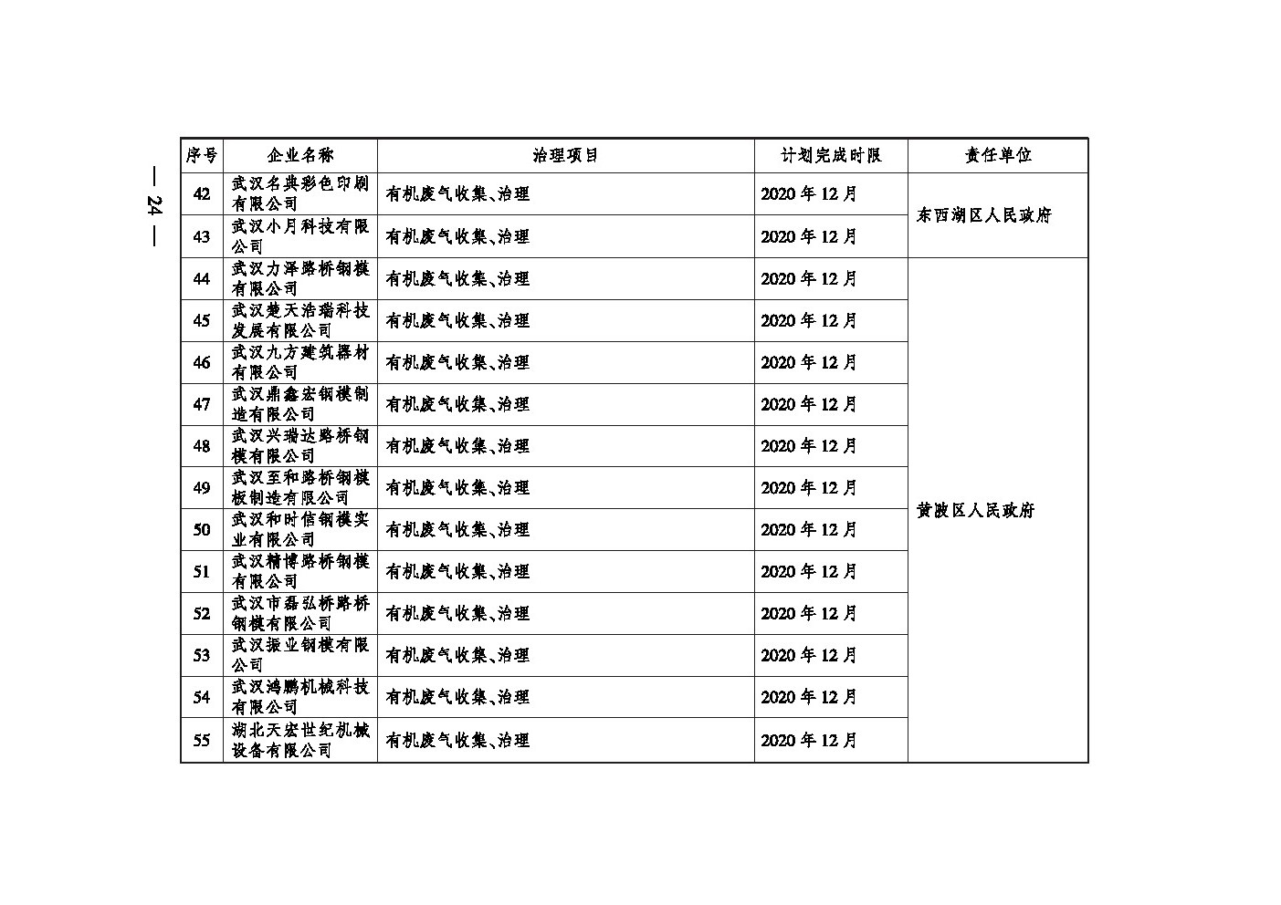 1.夯实重污染天气应急减排清单。按照《市人民政府关于印发武汉市重污染天气应急预案的通知》(武政规〔2020〕4号)要求,各区要编制重污染天气应急减排项目清单,组织纳入清单的企业按照“一厂一策”原则,编制应急响应操作方案,制作公示牌,安装在厂区入口等显要位置。(责任单位:市生态环境局、市经济和信息化局,各区人民政府)