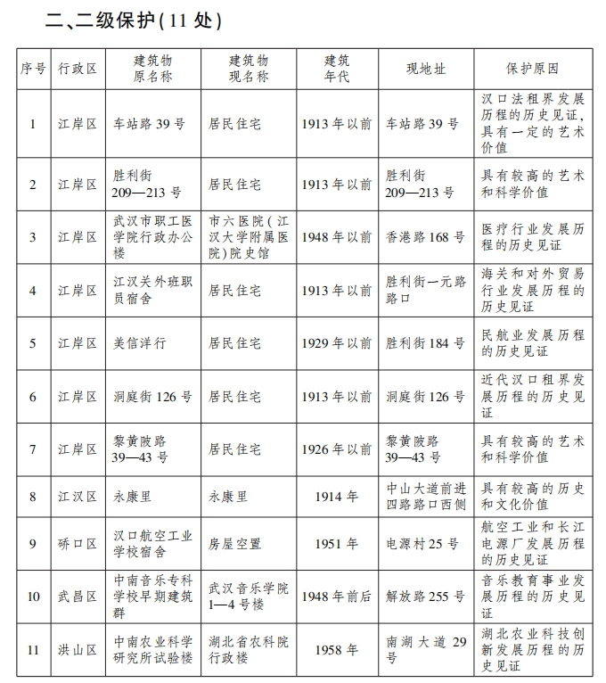 为加大文物和文化遗产保护力度,加强城乡建设中历史文化保护传承,更好赓续城市历史和文脉,根据《武汉市历史文化风貌街区和优秀历史建筑保护条例》等有关规定,经研究,同意汉口新华广播电台等21处历史建筑列入我市第十四批优秀历史建筑保护目录,现予公布。